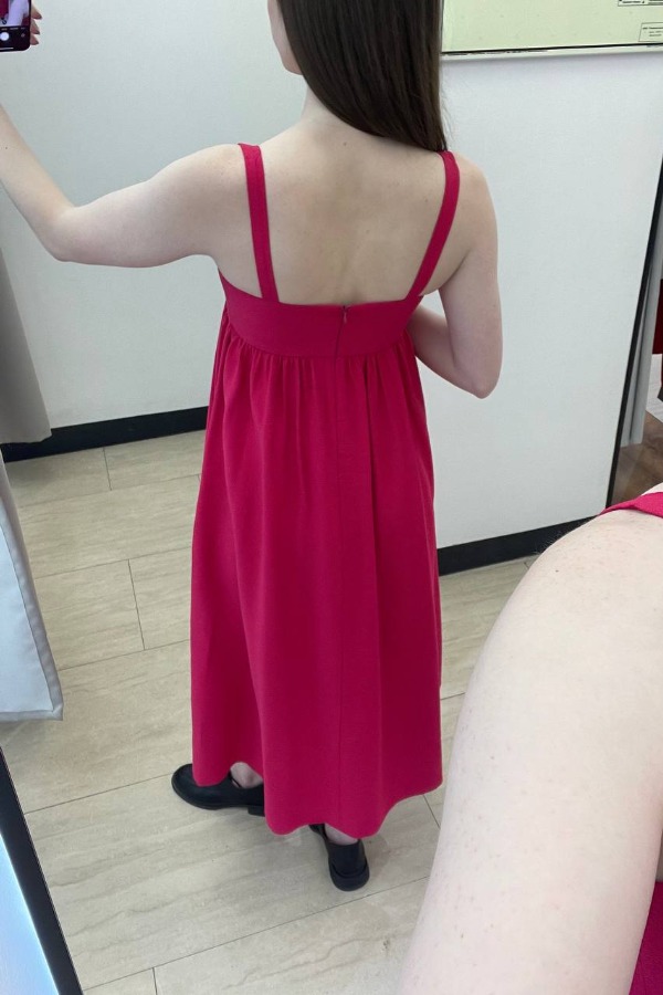 Платье на бретелях из вискозной ткани с крэш-эффектом. Изделие, прилегающее в области груди и свободное в области бедер. Лиф двухслойный с красивым женственным вырезом. Верхняя часть переда отрезная под линией груди, с фигурными подрезами. На спинке застежка-молния. В таблице размеров представлены параметры человека, а не изделия.