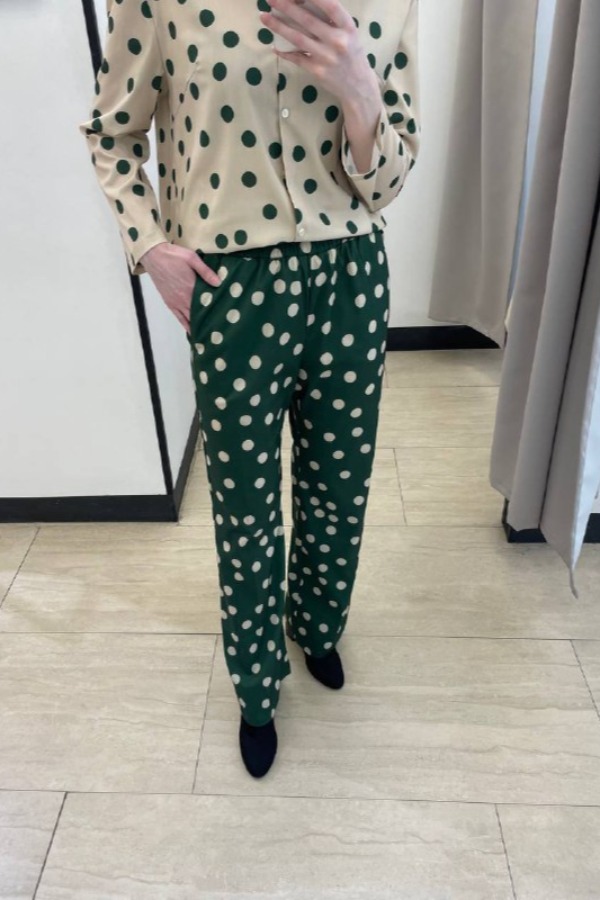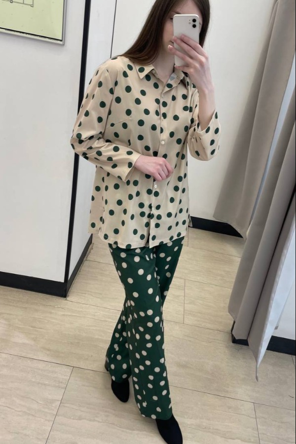 Летний костюм из вискозной ткани компаньонов. Рубашка свободного силуэта с разрезами в боковых швах и застёжкой на пуговицы. Рубашечный длинный рукав. Вырез горловины обработан отложным воротником на стойке. На задней части изделия выполнена кокетка с небольшой складкой. Брюки прямого силуэта. Пояс притачной с эластичной резиной, в боковых швах карманы. Легкий, свободный, очень удобный и комфортный к телу костюм.