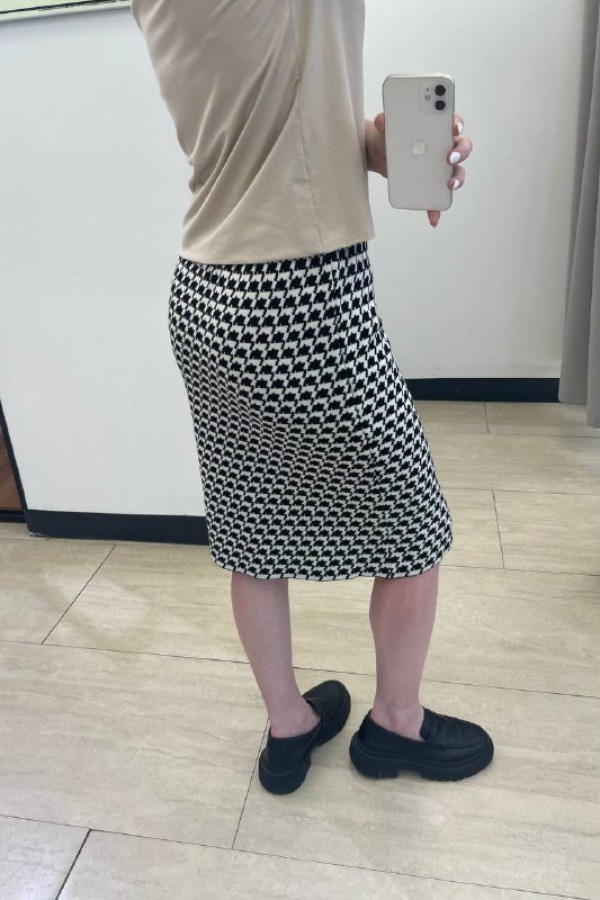 Юбка прилегающего силуэта с эластичным поясом. Изделие выполнено из мягкой структурированной пряжи.