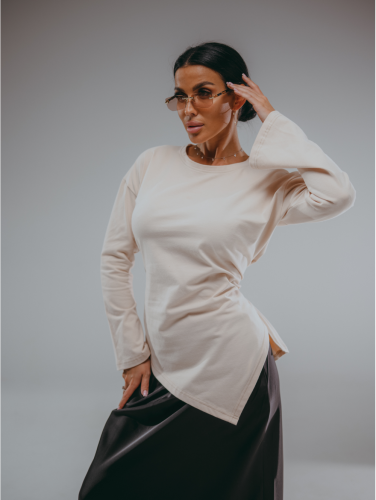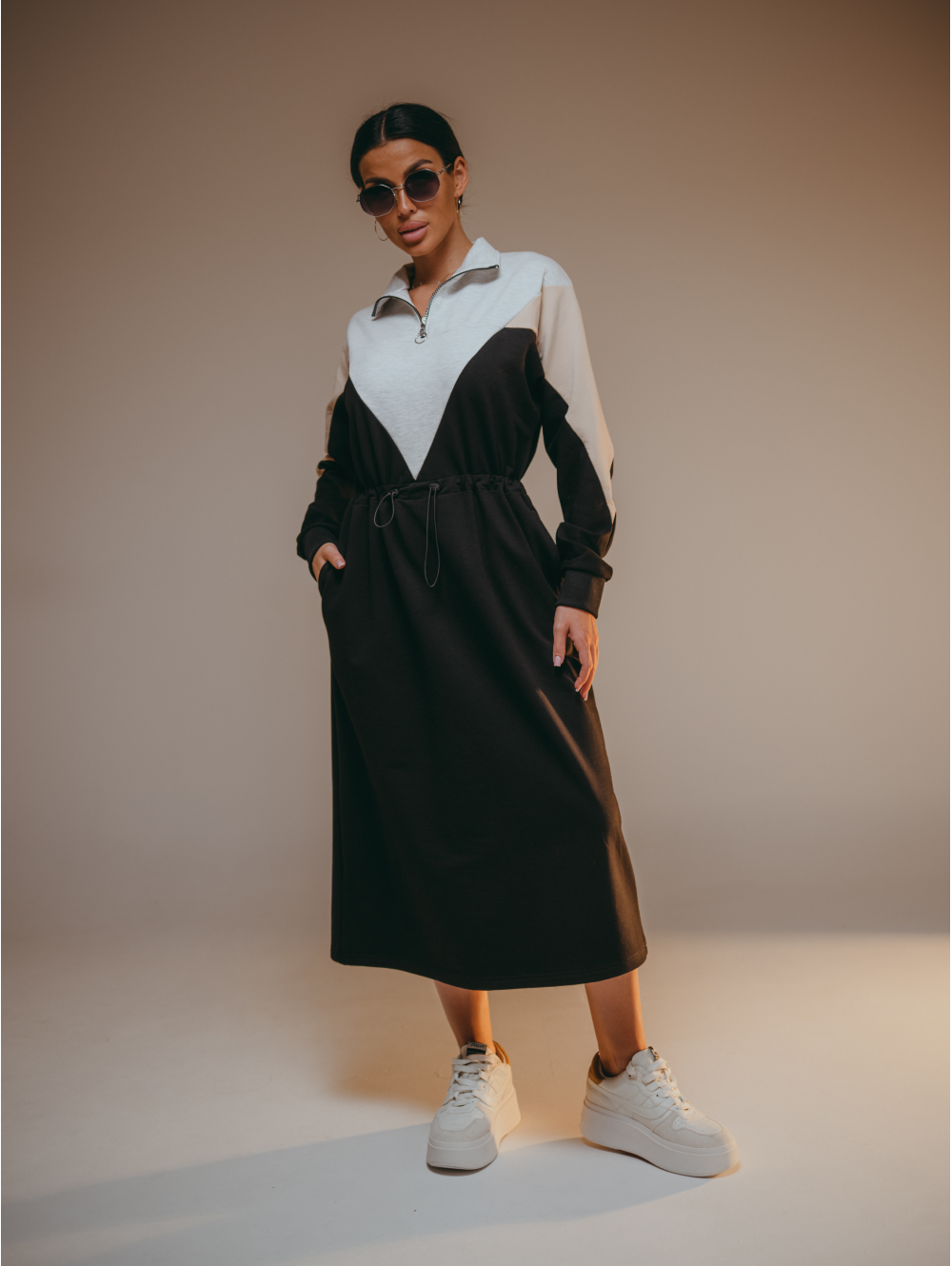 Платье, прямого силуэта длины миди с длинным рукавом.