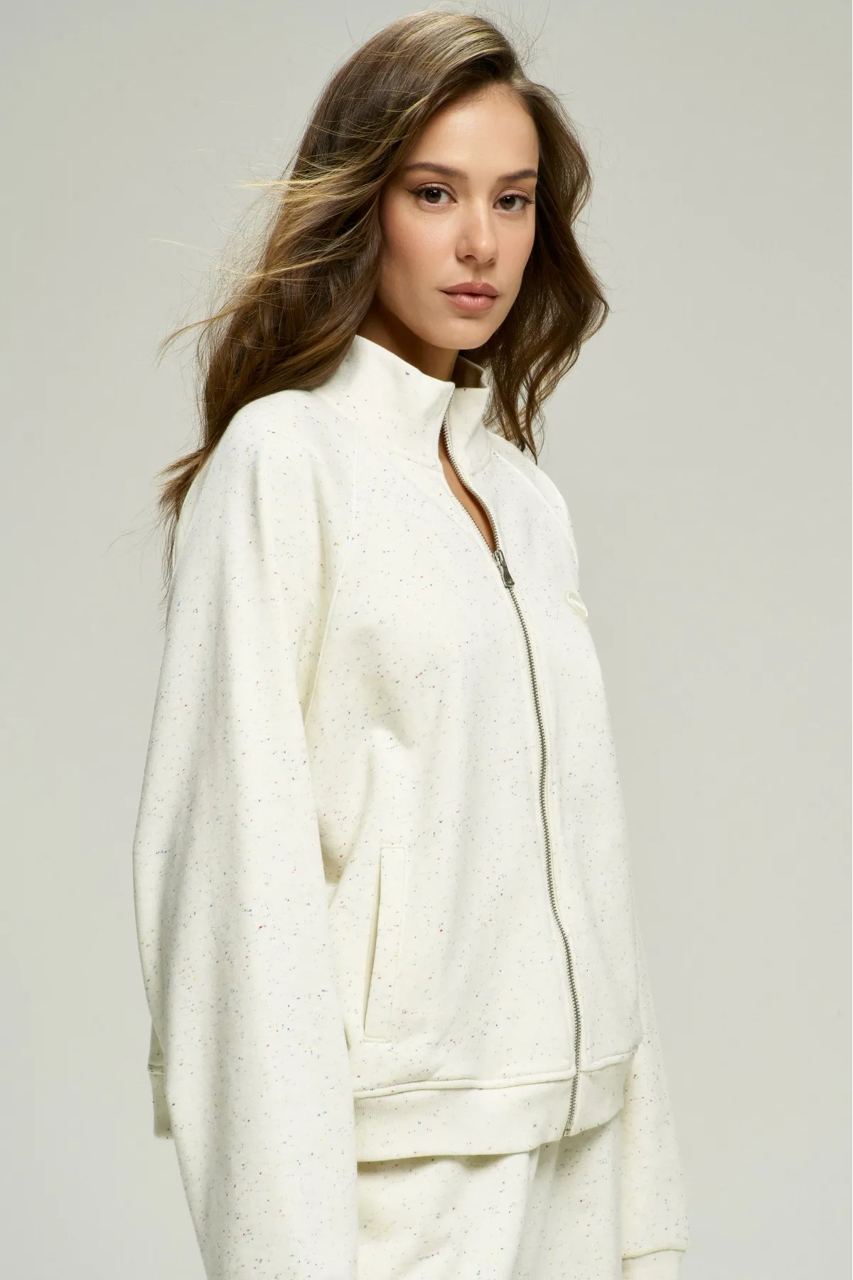Простая, но выразительная на молнии, она легко становится базой для многослойных образов: надевайте с брюками из футера и кроссовками для расслабленного сетa, с джинсами и кедами для городского стиля или сочетайте с юбкой и ботинками, чтобы получить смелый контраст.
