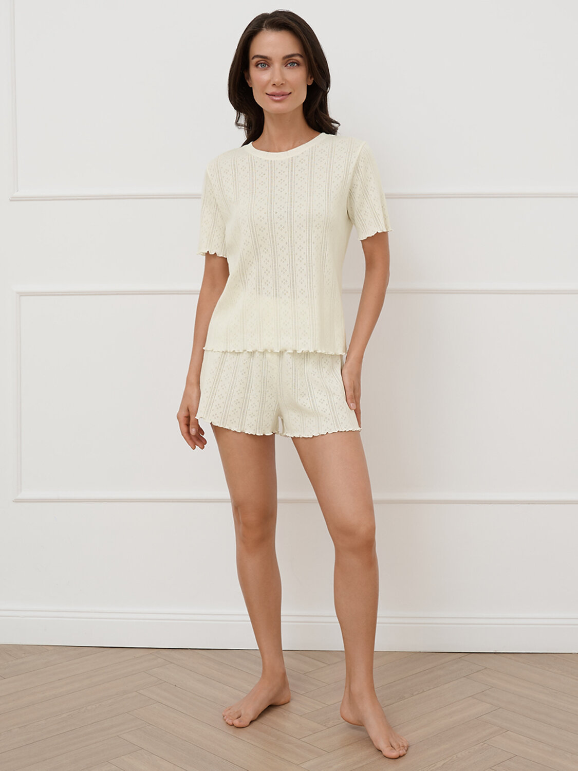 Артикул поставщика: OmD 0260D POINTELLE Пижама жен. (Футболка+Шорты с гульфиком), СО