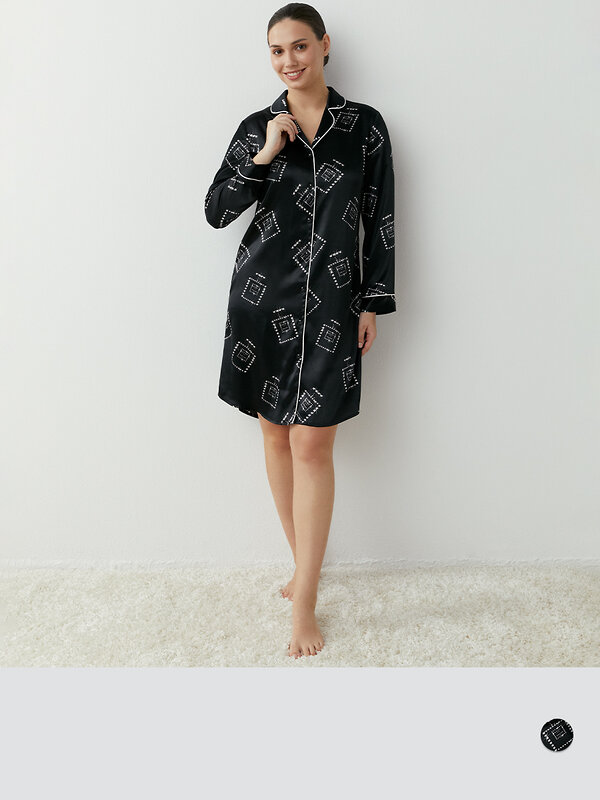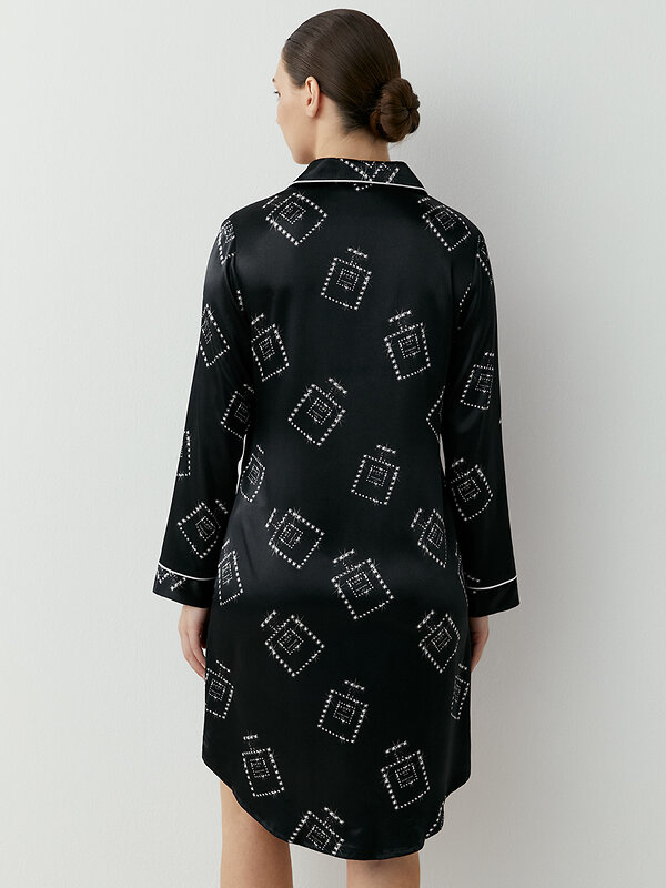 Изящная и комфортная рубашка с элегантным и минималистичным принтом отлично подойдет для дома и сна. Стильное решение на каждый день.