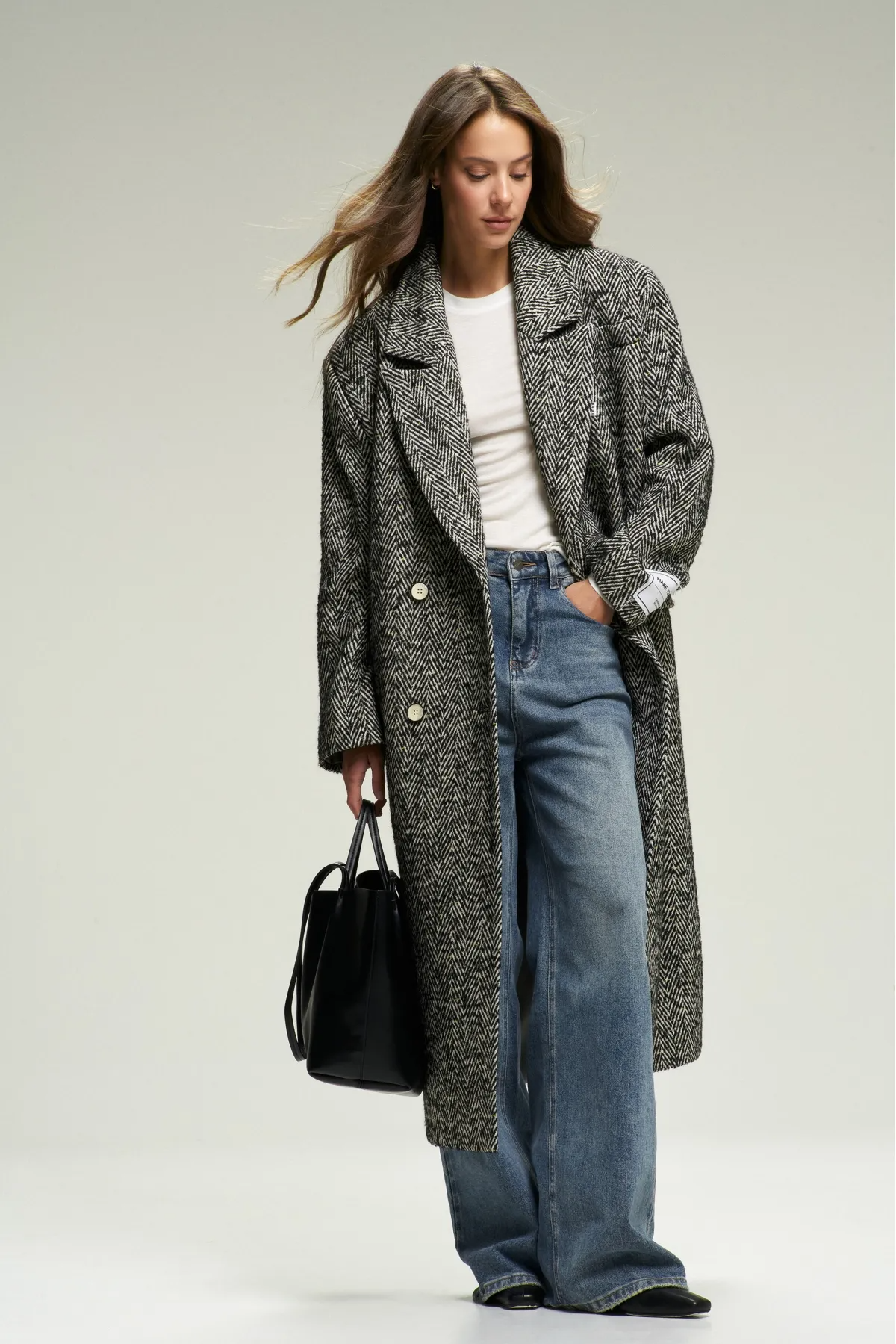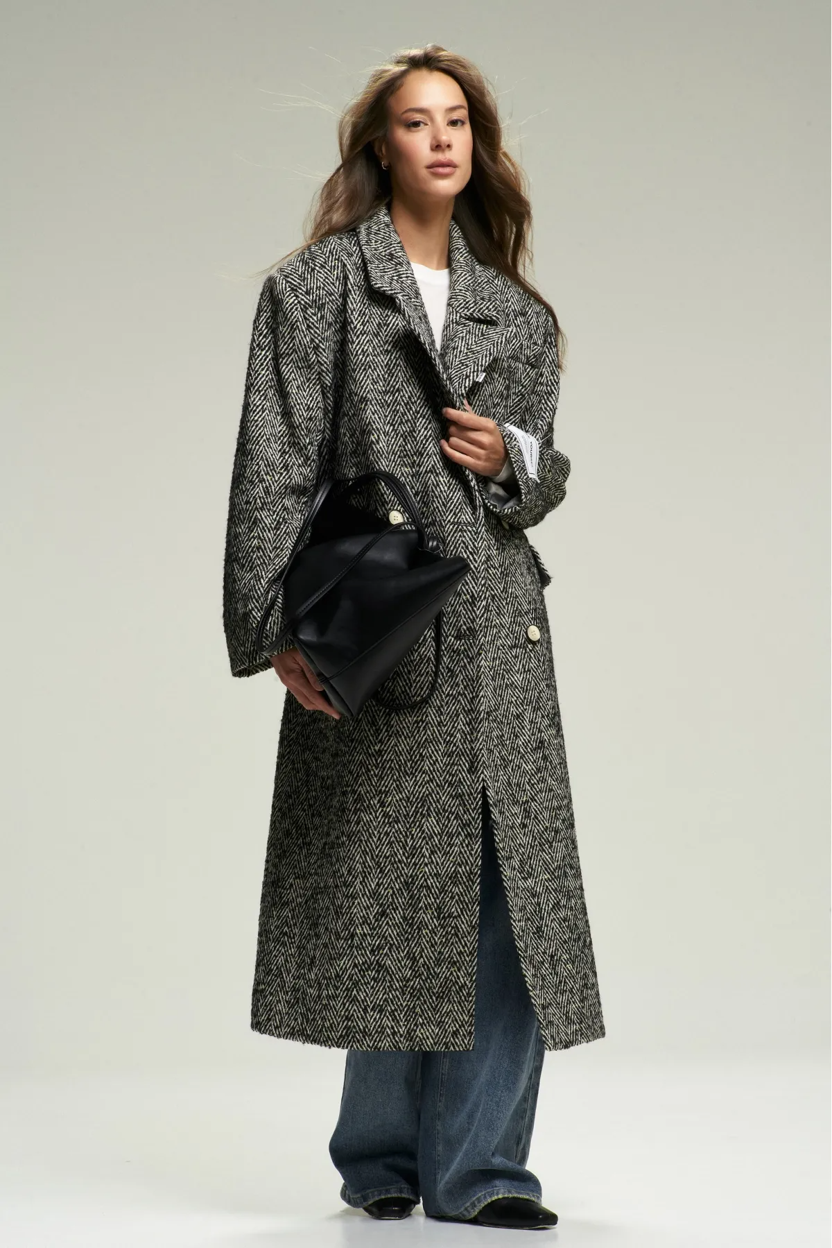 Широкие плечи подчеркивают актуальный тренд на силуэт oversize, придавая вашему облику дополнительное выражение и уверенность. Макси-длина пальто добавляет образу драматичности и уникальности, защищая от ветра и холода, давая возможность сочетать его с различными стилями одежды.