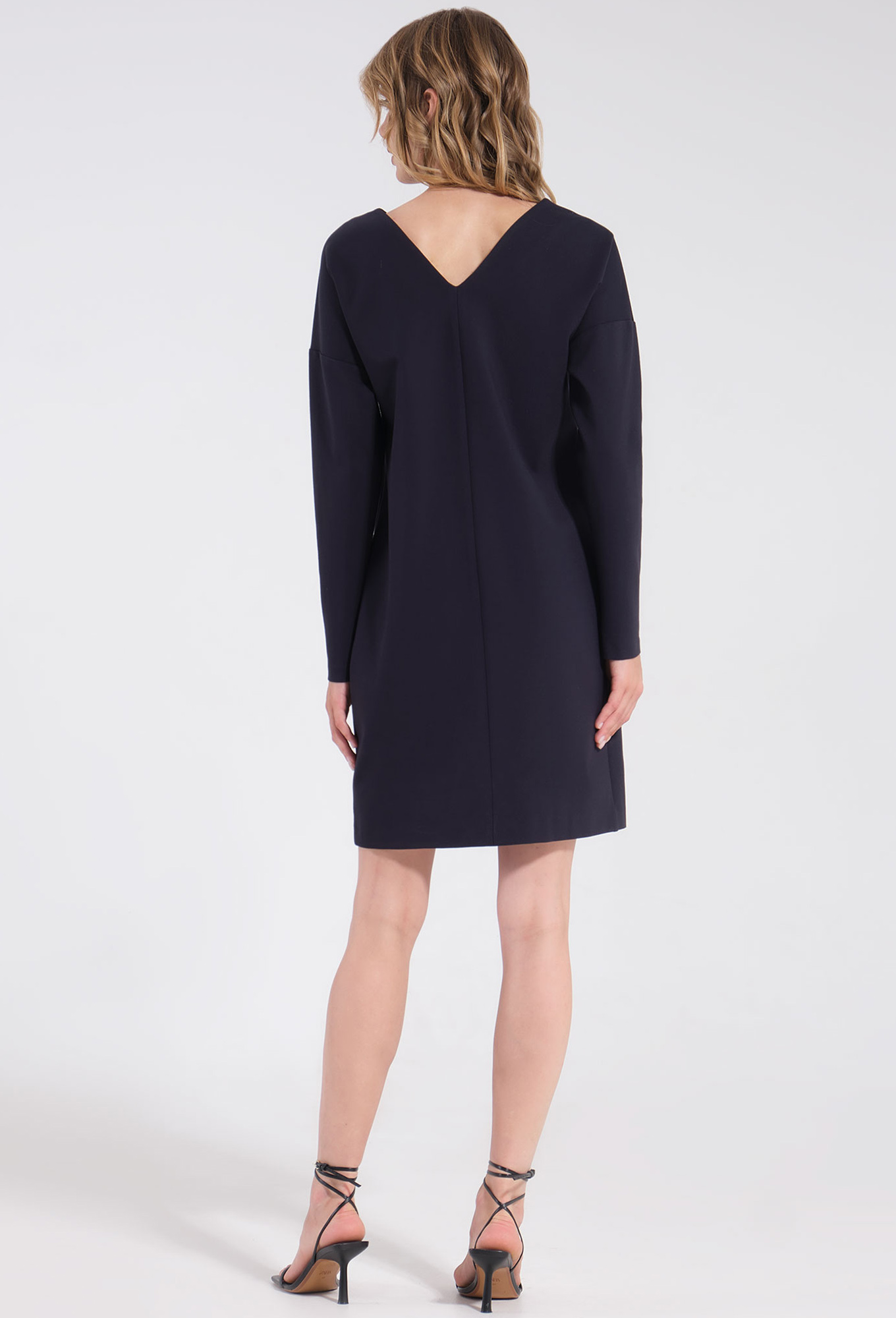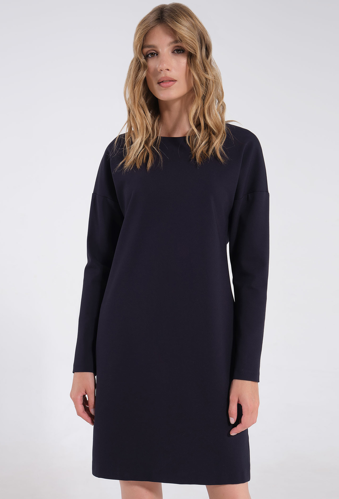 Платье прямого фасона дополнен рукавом со спущенной линией плеча, образующей мягкие переходы. Трикотажное платье женское на осень украшено V-вырезом на спинке, визуально вытягивающим силуэт. Оно изготовлено из приятной на ощупь ткани, которая хорошо пропускает воздух.