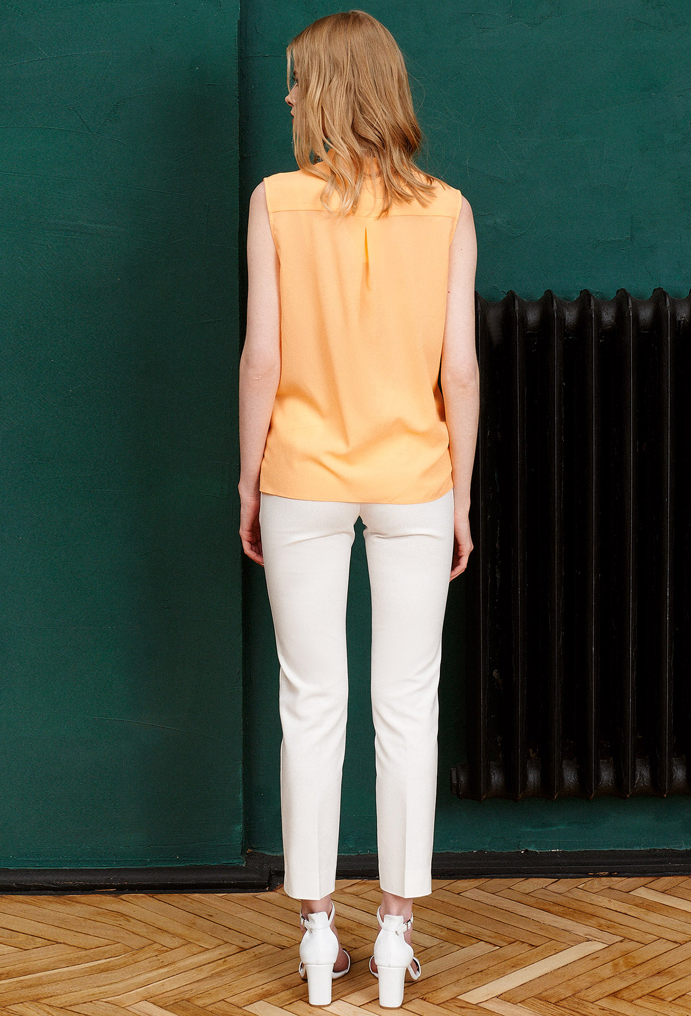 Летняя блузка для женщин – универсальный элемент для создания эффектных образов. Она невероятно легкая, практически не ощущается на теле. Чтобы вы ощущали комфорт даже в жаркую погоду, модельеры предусмотрели удобный крой. Блузка женская выполнена без рукавов, спереди – имитация декольте на запах.
