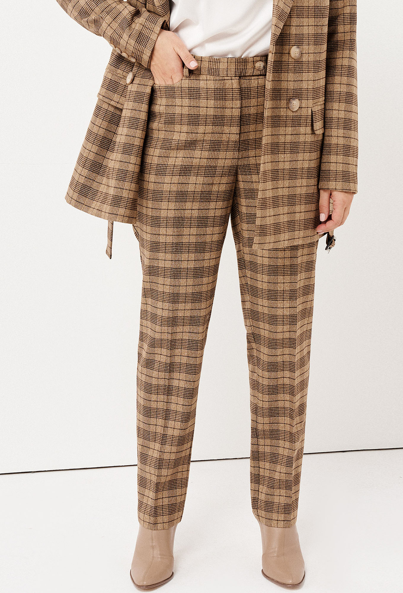 Тип ткани: Брюки- Полиэстер 63%, вискоза 34%, эластан 3% Подкладка- Полиэстер 55%, вискоза 45%.