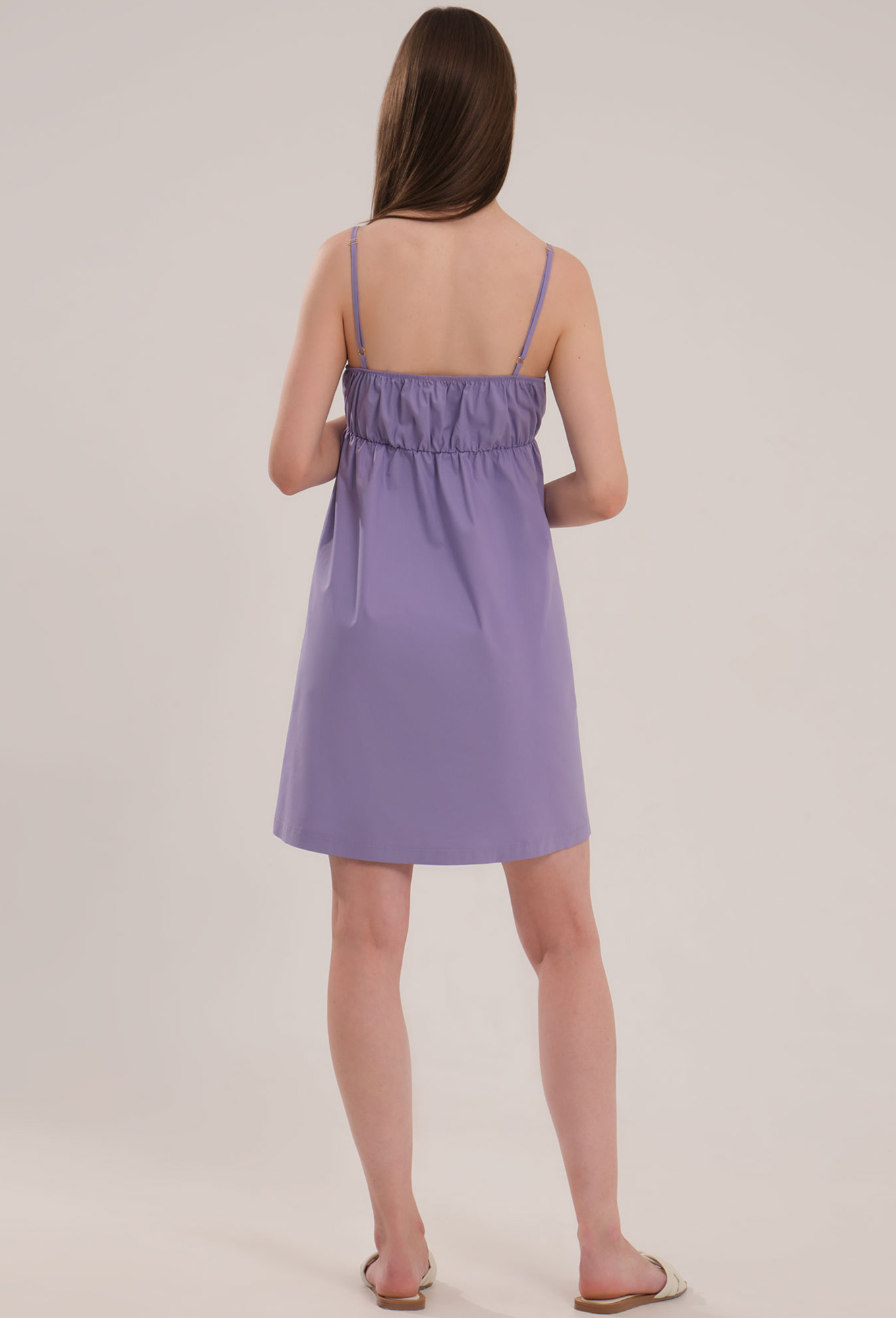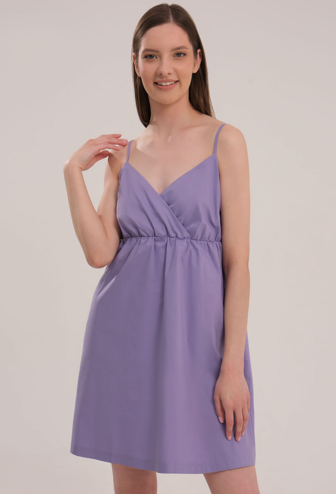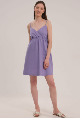Женское хлопковое платье на тонких бретелях, имеет длину мини.