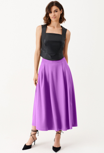 Юбка миди - универсальная вещь для вашего гардероба, сочетающаяся с блузкой, футболкой, топом. Благодаря свободному крою, юбка ниже колена не облегает силуэт. Она ложится красивыми плавными волнами при движении.