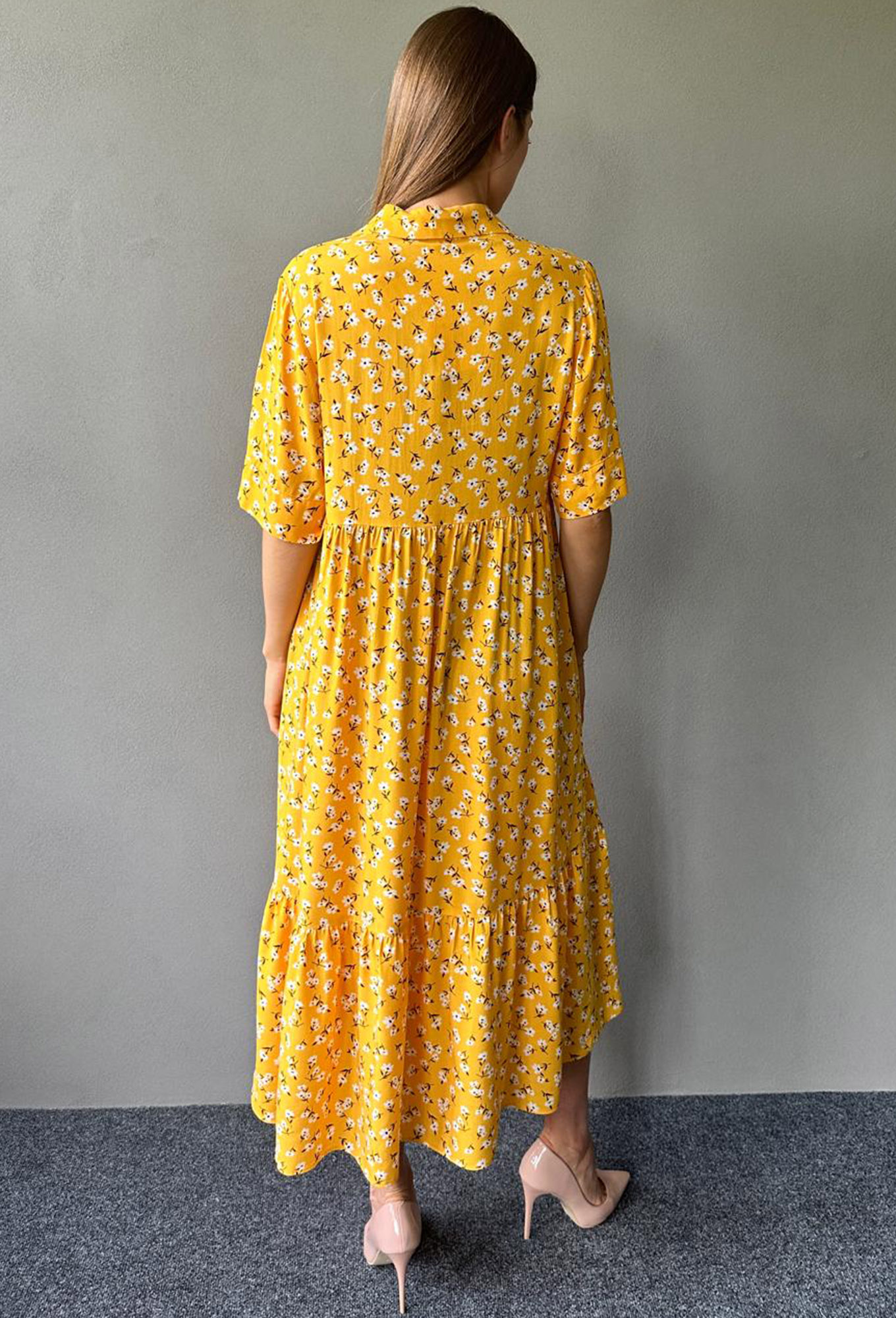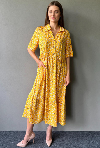 Платье миди, свободного кроя из вискозы, с коротким рукавом.