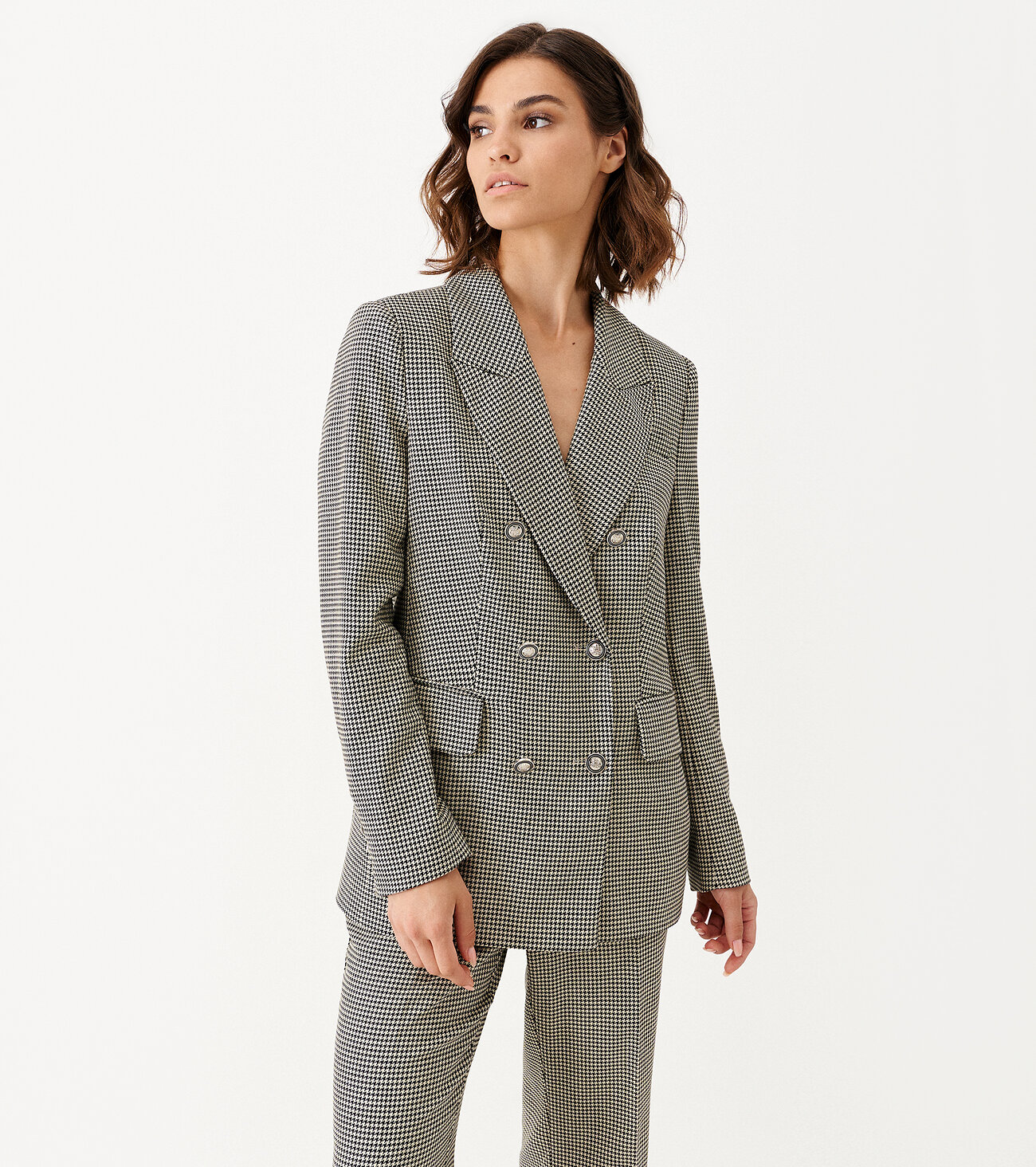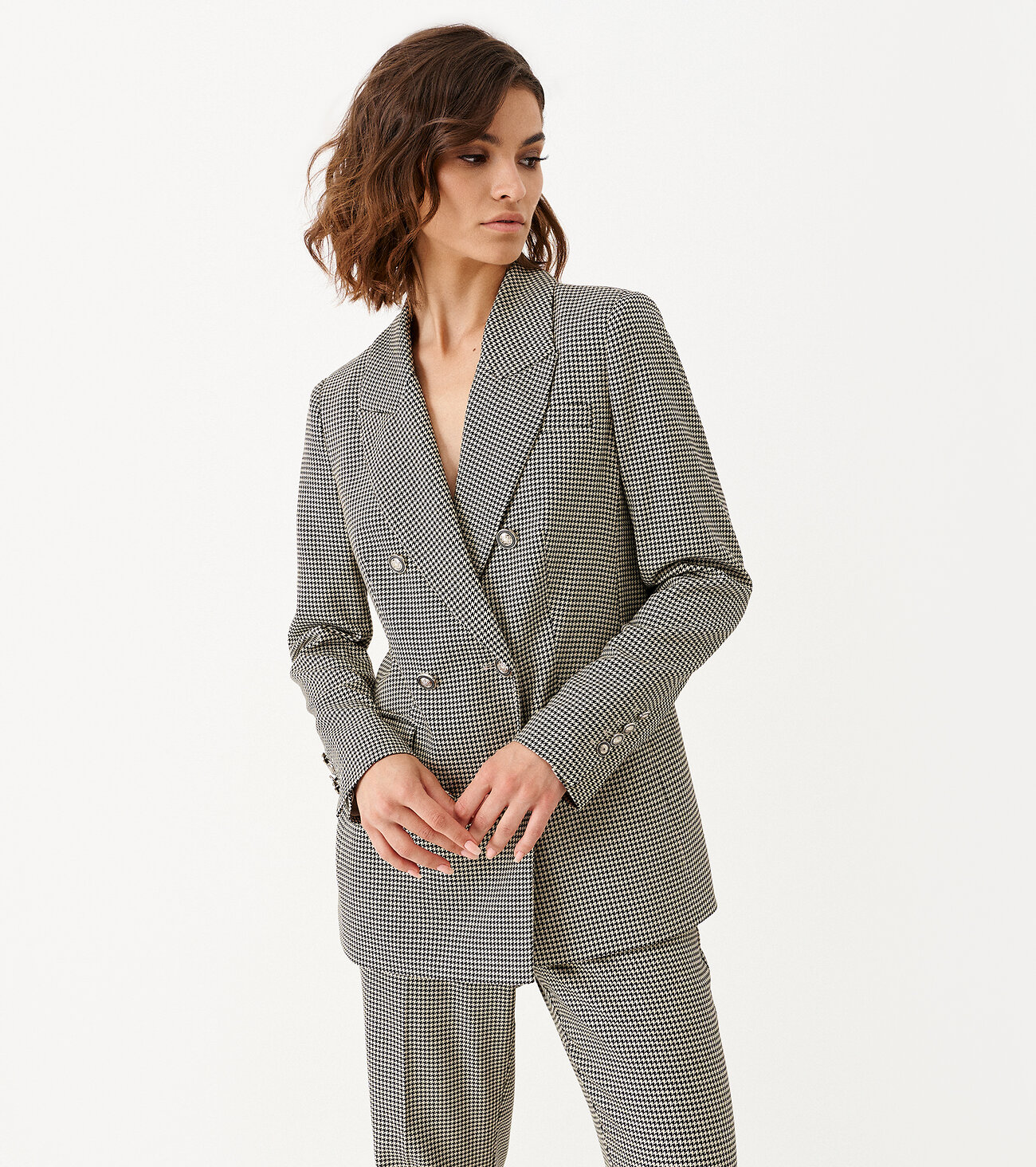 Состав: Жакет- Полиэстер/polyester 63%; вискоза/viscose 34%; эластан/elastane 3%.; Брюки- Полиэстер/polyester 63%; вискоза/viscose 34%; эластан/elastane 3%.; Подкладка- Полиэстер/polyeste