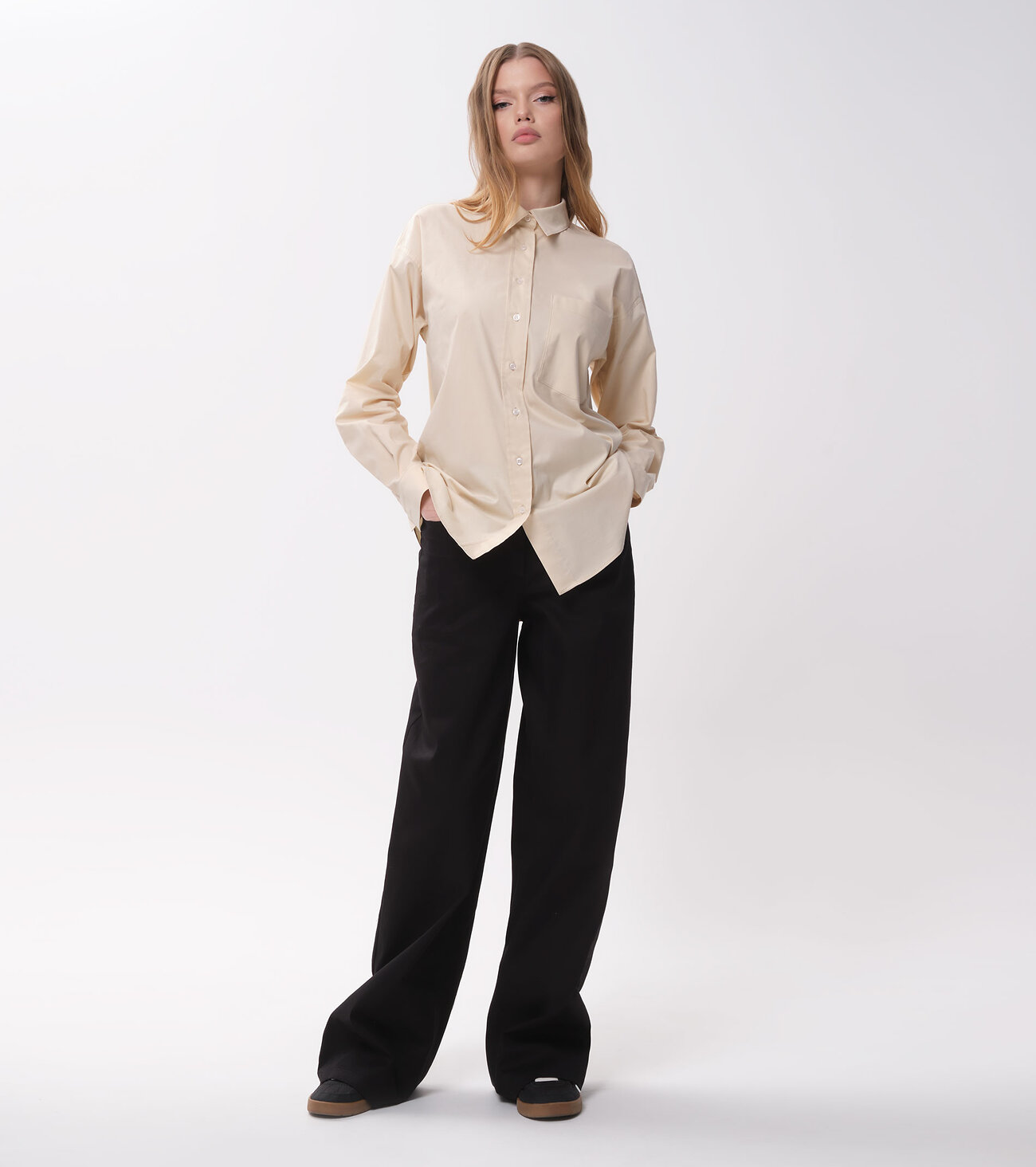 Элегантная блузка женская – неотъемлемый элемент базового гардероба. В ней можно ходить на учебу, работу, вечеринку, гулять по парку. Рубашка женская оверсайз поможет создать деловые, офисные, повседневные образы. Хлопковая блузка приятная на ощупь, хорошо пропускает воздух к телу и дарит комфорт. Ее можно носить самостоятельно или сочетать с жакетом, кардиганом, шубкой и курткой. Блузка с длинным рукавом подойдет как для прохладного лета, так и для межсезонья. Вы можете купить белую блузку на пуговицах в размерах 42-50 и сочетать ее с укороченными брюками, клеш или джинсами.Размер 42: Длина изделия - 71см, Длина рукава - 53см, Ширина плеча - 19,1см, Ширина по груди - 52,5см, Ширина по низу - 56см, Ширина рукава - 20,8см;