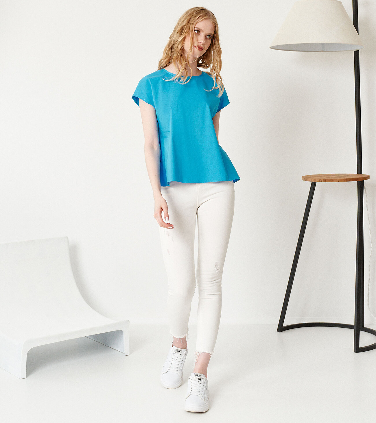 Размер 42: Длина изделия - 55см, Ширина плеча - 21см, Ширина по груди - 51см, Ширина по низу - 53см; Голубой