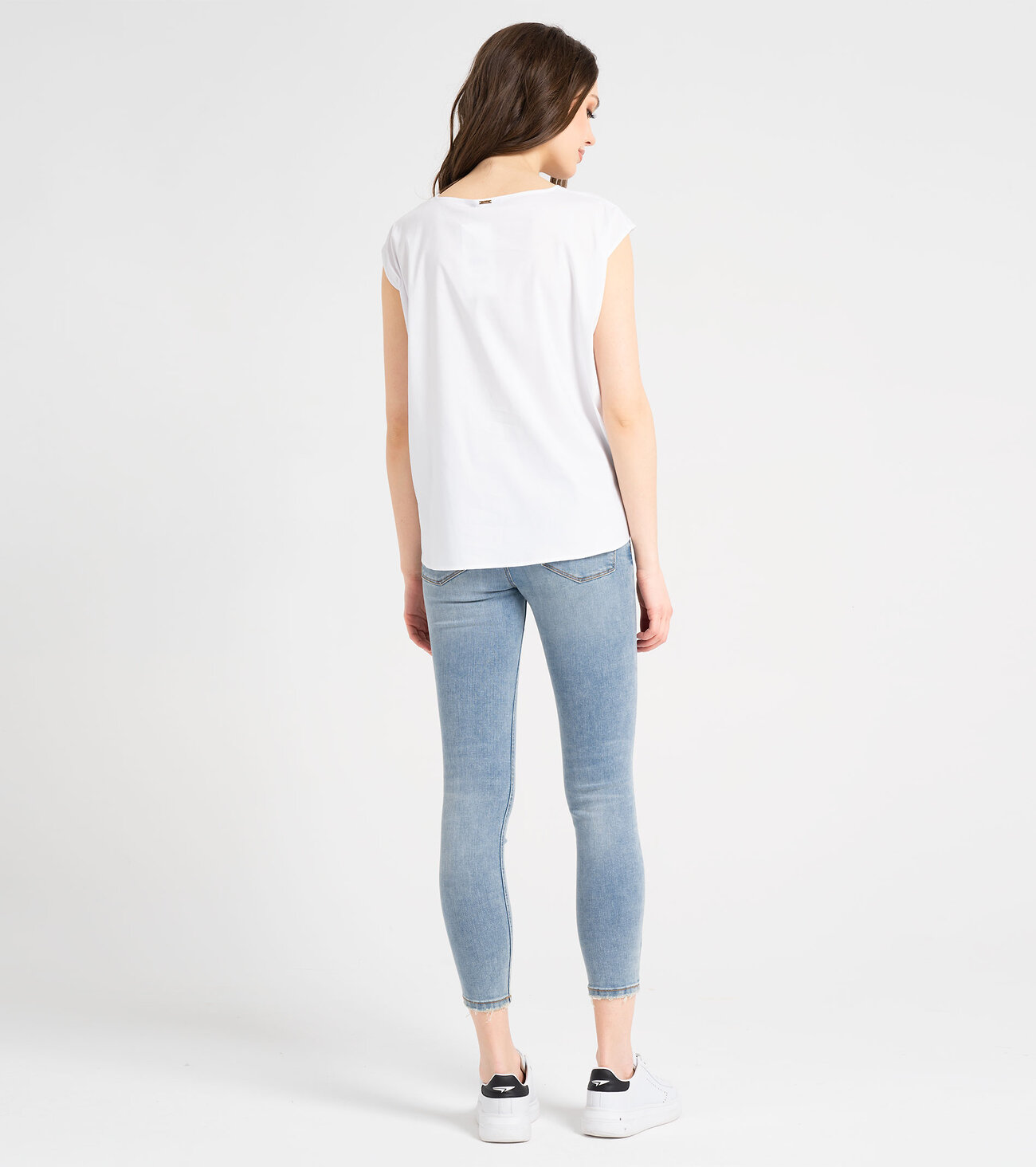 Размер 48: Длина переда от высшей плечевой точки до низа - 56см, Длина спинки - 63,5см, Ширина плеча - 17см, Ширина по груди - 59см, Ширина по низу - 58см; Белый