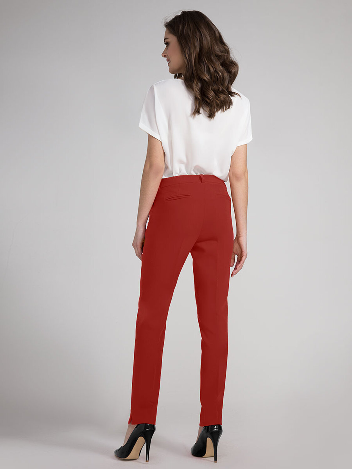 Классические брюки женские - основной элемент базового гардероба, с которым легко комбинируется множество вещей. В сочетании с блузками, топами, майками, футболками, водолазками, джемперами и пиджаками брюки женские узкие составляют восхитительные сеты для повседневной носки. Офисные брюки женские современного покроя отлично подойдут не только для работы или учебы. В них можно пойти на встречу с друзьями, в гости, кинотеатр, просто прогуляться по городу. Модель изготовлена из прочной, плотной вискозной ткани, поэтому хорошо держит форму и не сминается. Ее можно стирать в бережном деликатном режиме при низкой температуре. Брюки женские, зауженные к низу, дополнены карманами в боковых швах и их имитацией в задней части изделия. По бокам штанин - небольшие разрезы. Брюки женские зауженные застегиваются на молнию. На поясе располагается потайной крючок-застежка и шлевки для ремня. Вы можете купить брюки женские модные для создания эффектных стильных образов."Размер 42: Высота посадки - 23см, Длина брюк с поясом - 99.5см, Длина по внутреннему шву - 75см, Ширина брючин сверху - 57см, Обхват брюк по низу - 33.5см, Ширина по бедрам - 45.5см, Ширина по талии - 35см;