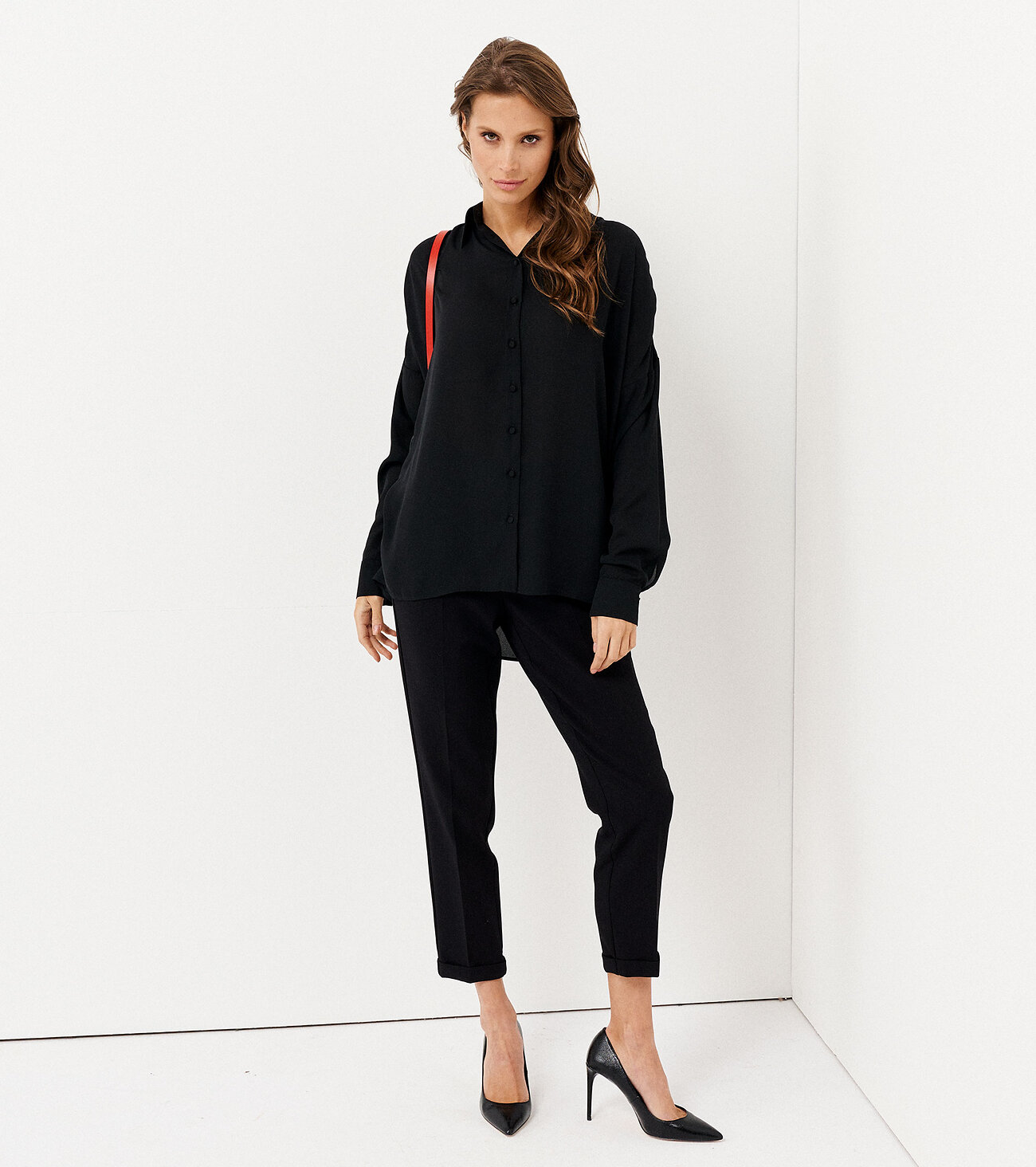 Размер 52: Длина изделия - 73,5см, Длина переда от высшей плечевой точки до низа - 74,5см, Длина рукава - 47,5см, Обхват шеи - 50см, Ширина плеча - 27см, Ширина по низу - 72см, Ширина под проймой - 68см, Ширина рукава - 23,5см; Черный