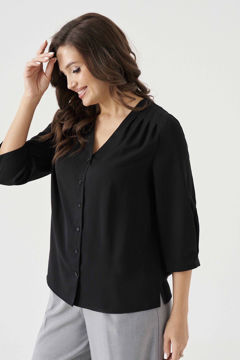 Блуза женская для повседневной носки. Изделие прямого силуэта с втачным рукавом с длиной 3/4. Горловина изделия V-образная. В блузке имеется центральная бортовая застежка на обметанные петли и пуговицы. По переду декоративные складки в плечевых швах. Длина блузы классическая. Красивая и нежная блузка, которая будет радовать вас своим изумительным видом.Размер 42: Длина изделия - 62см, Длина рукава - 46см, Ширина плеча - 9.4см, Ширина по груди - 50см, Ширина по низу - 51см, Ширина рукава - 18.5см;