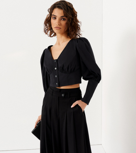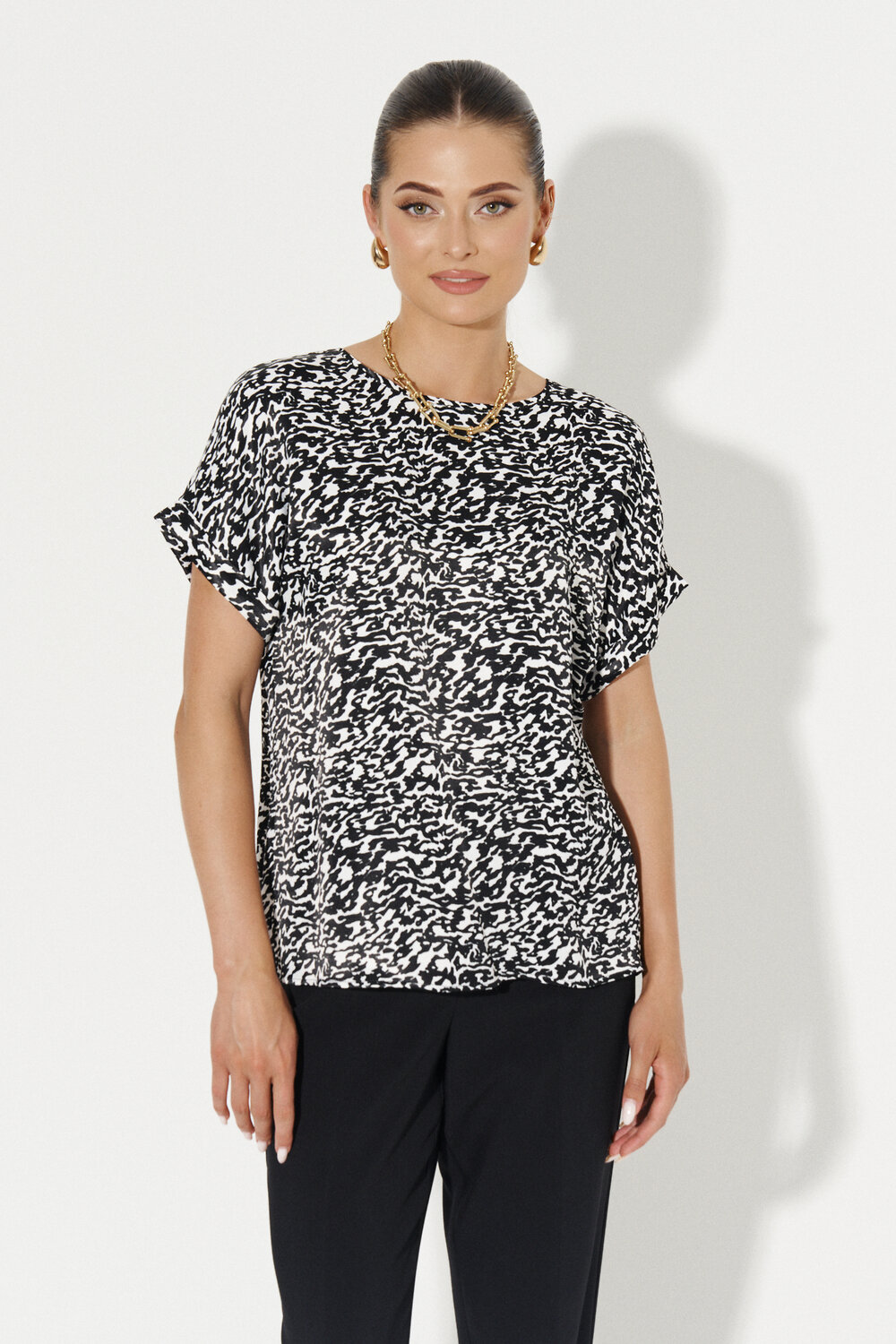 Блузка из вискозной ткани для повседневной носки. Блузка прямого силуэта. Горловина обработана притачной бейкой. Линия плеча слегка спущена. Пройма обработана притачной манжетой. По боковым швам имеются разрезы. Идеальная базовая блуза.Размер 44: Длина изделия - 62см, Ширина плеча - 27см, Ширина по груди - 53см, Ширина по низу - 54см, Ширина рукава - 20см;