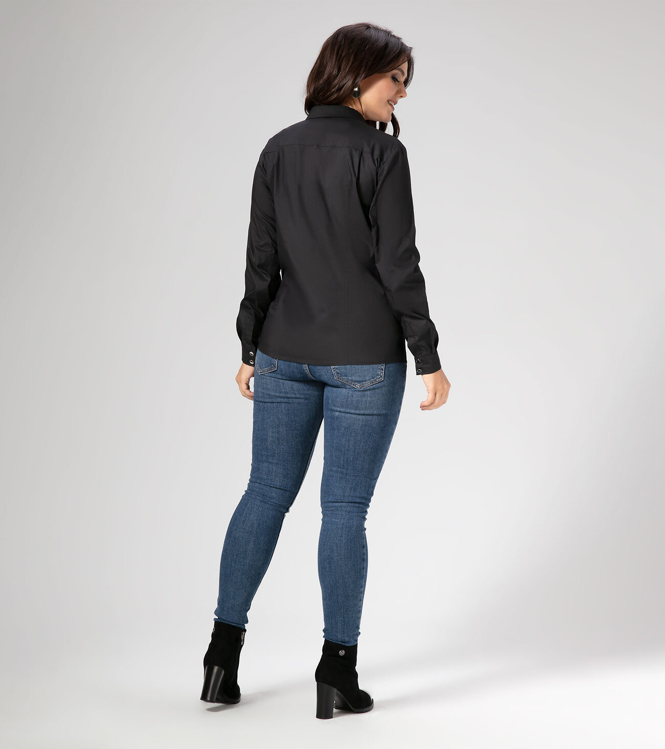 Классическая блузка из хлопковой ткани. Такая лаконичная строгая блузка отличный вариант для офиса. Блузка полуприлегающего силуэта, с центральной застежкой на потайные петли и пуговицы и одну петлю и пуговицу на воротнике. Спинка с горизонтальной кокеткой и двумя небольшими складочками. Рукава рубашечные одношовные с притачными манжетами, застегивающимися на петлю и пуговицу. По швам притачивания манжет закладываются односторонние складочки. Разрезы рукавов обработаны английской планкой. Воротник сорочечный, с притачной стойкой.Размер 50: Длина изделия - 65см, Длина рукава - 62.5см, Обхват шеи - 48.5см, Ширина плеча - 12см, Ширина по груди - 53.5см, Ширина по низу - 56.5см, Ширина рукава - 19.5см;
