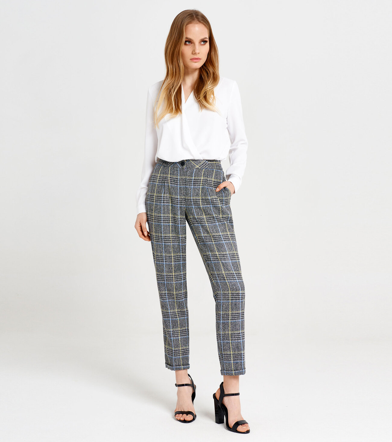 Брюки классические прямые По переду расположены карманы с наклонным входом Стильные классические брюкиРазмер 42: Высота посадки - 25,5см, Длина брюк с поясом - 96см, Длина по внутреннему шву - 72см, Ширина брючин сверху - 60см, Обхват брюк по низу - 33,5см, Ширина по бедрам - 49см, Ширина по поясу - 32см;