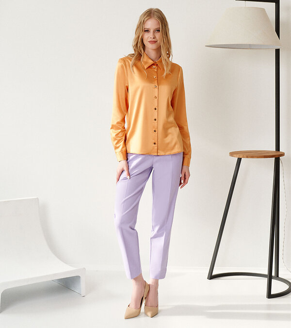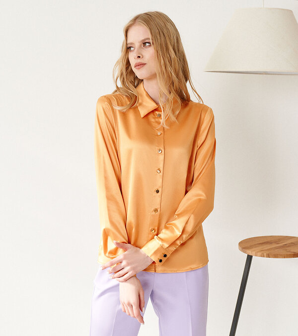 Классическая блузка рубашка выручит вас в любой жизненной ситуации. В ней можно пойти на деловую встречу, работу, учебу, вечеринку и торжественное мероприятие. Подберите низ, обувь, аксессуары и утонченный, женственный образ готов. Летняя рубашка женская пошита из тонкого трикотажа. Она дарит комфорт даже во время жаркой погоды. Также женская летняя блузка с длинным рукавом актуальна в межсезонье, хорошо сочетается с пиджаком, кардиганом, верхней одеждой. Вы можете заказать блузу женскую на пуговицах с отложным воротником в размере 42-50. Размер 42: Длина изделия - 62см, Длина рукава - 63см, Обхват шеи - 43,5см, Ширина плеча - 13см, Ширина по груди - 48см, Ширина по низу - 51см, Ширина рукава - 17,5см;