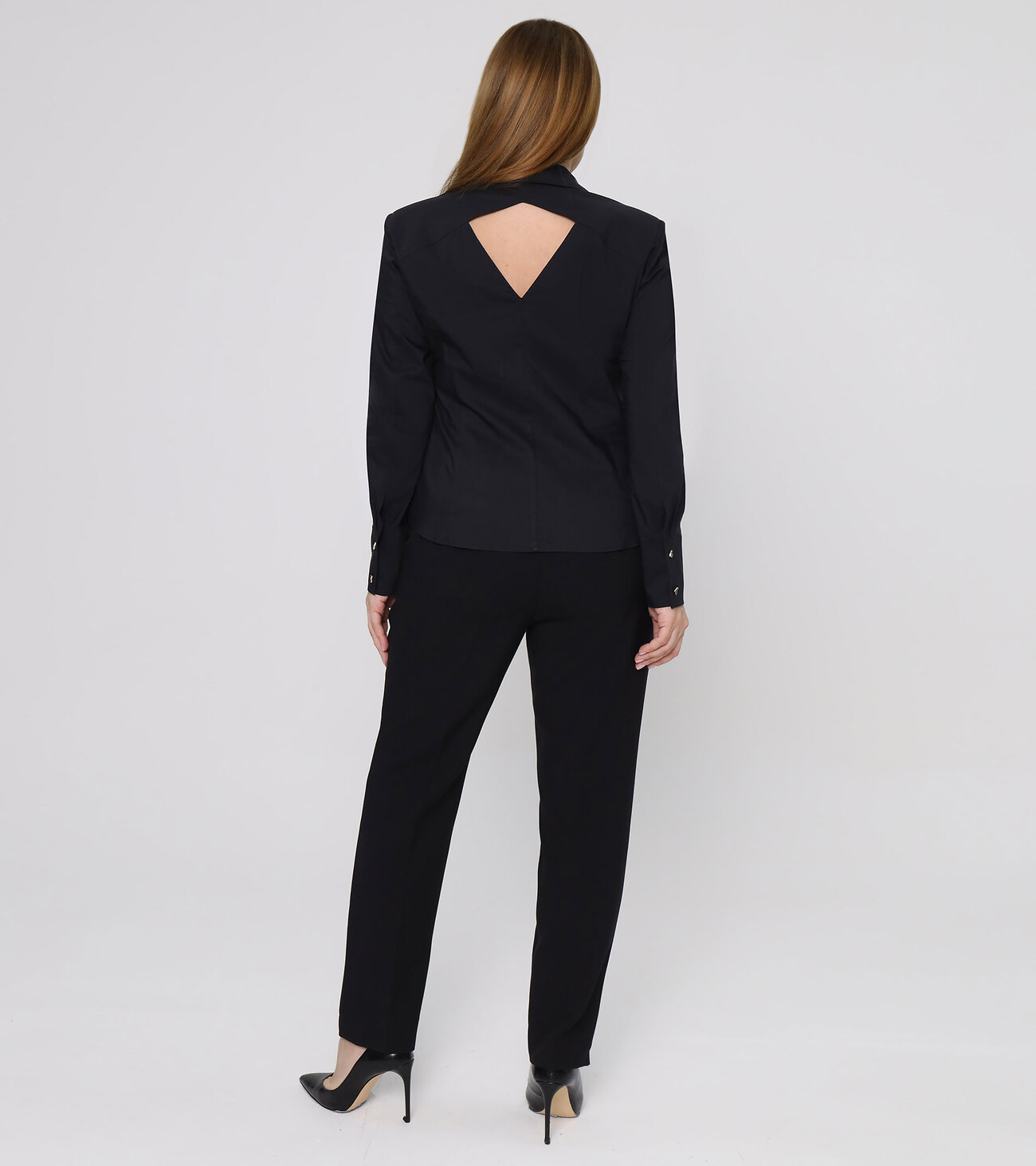 Удлиненная блузка с открытой спиной – оригинальная вещь, которая послужит вам для создания стильных образов на любой случай. Ее уместно надеть в офис, на деловую, дружескую и романтическую встречу, праздничное мероприятие. Изысканная модель гармонично смотрится в паре с брюками и юбкой любого кроя, обувью на каблуке, танкетке. Универсальный белый цвет подходит для сочетания с предметами гардероба любой оттеночной гаммы. Деловая блузка на пуговицах скроена с длинным рукавом на манжетах, рубашечным воротником, округлым низом. Акцент изделия – вырез в виде перевернутого треугольника на спинке. Покупайте блузку женскую нарядную, чтобы всегда выглядеть элегантно.Размер 44: Длина изделия - 60см, Длина рукава - 62см, Обхват шеи - 44см, Ширина плеча - 13,5см, Ширина по груди - 46см, Ширина по низу - 50см, Ширина рукава - 17,2см;
