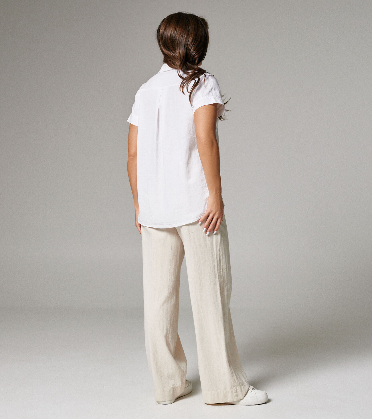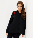 Блуза женская из хлопковой ткани для повседневной носки. Блуза полуприлегающего силуэта с коротким рукавом, воротником- стойкой. По переду застежка на пуговицы, отрезная кокетка, рельефные швы.По спинке отрезная кокетка, встречная складка. Рукав оформлен притачной отложной манжетой.Размер 46: Длина изделия - 74см, Длина рукава - 30,8см, Обхват шеи - 43,4см, Ширина по груди - 58см, Ширина по низу - 57см, Ширина рукава - 20,6см;