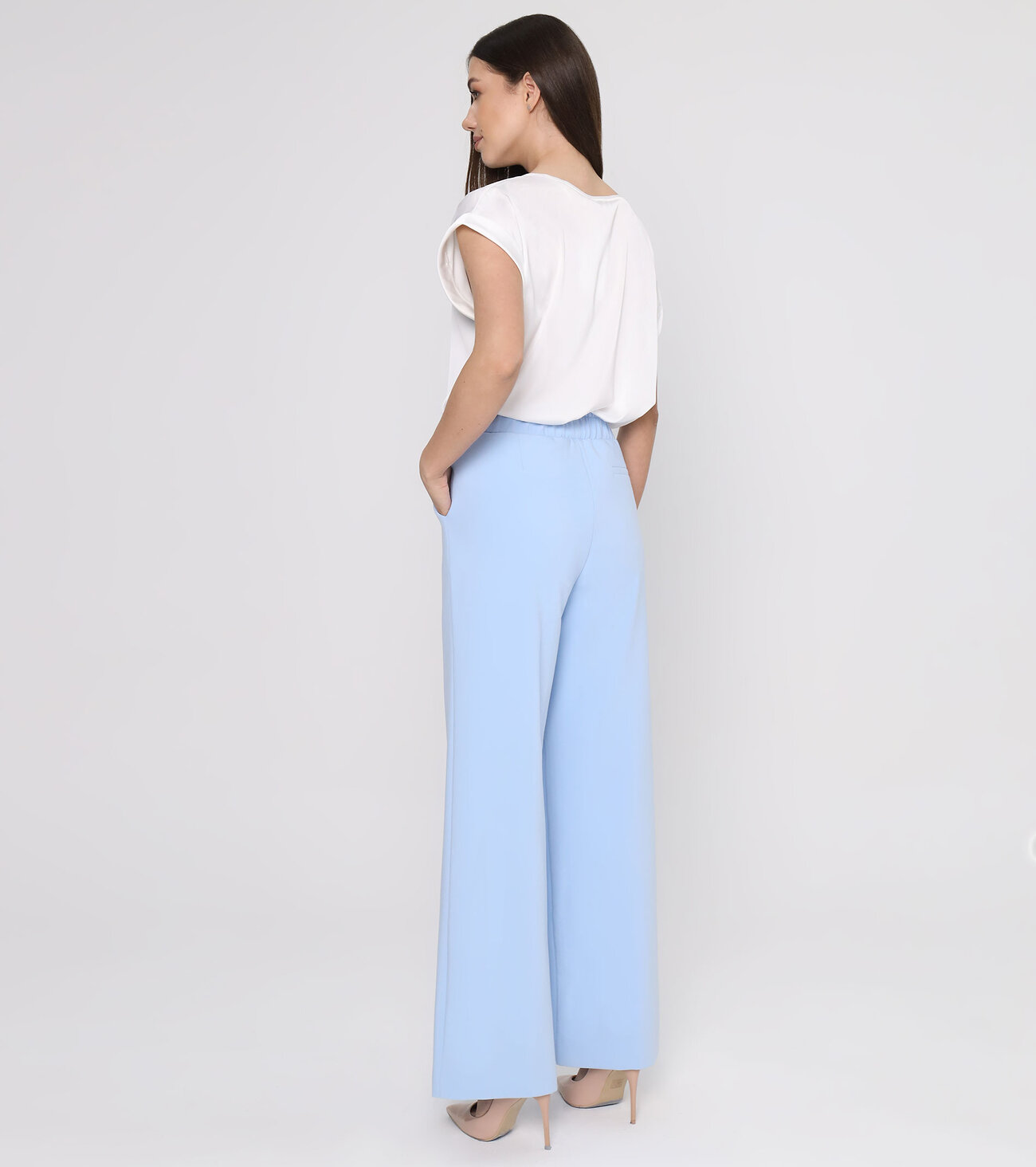Брюки женские строгие должны быть в гардеробе современной активной девушки. С ними можно создавать стильные повседневные аутфиты. Трендовая модель органично комбинируется с топом, майкой, блузкой, водолазкой, жакетом, свитером. Уместно надеть брюки женские в офис, на учебу, деловую, дружескую или романтическую встречу. В них вы будете выглядеть элегантно. Брюки женские классические с высокой талией идеально садятся по фигуре, благодаря особенностям кроя. Пояс выполнен на резинке. В боковых швах - прорезные карманы. Расклешенные брюки женские изготовлены из качественной гипоаллергенной поливискозной ткани, не требовательной к уходу. Вы можете купить брюки женские клеш, чтобы освежить свой базовый демисезонный гардеробРазмер 48: Высота посадки - 24,5см, Длина юбки с поясом - 111см, Длина по шаговому шву - 81,5см, Ширина брючин сверху - 71см, Обхват брюк по низу - 62см, Ширина по бедрам - 55см, Ширина по талии - 39см;