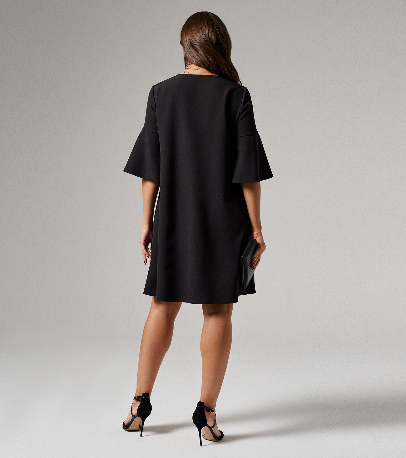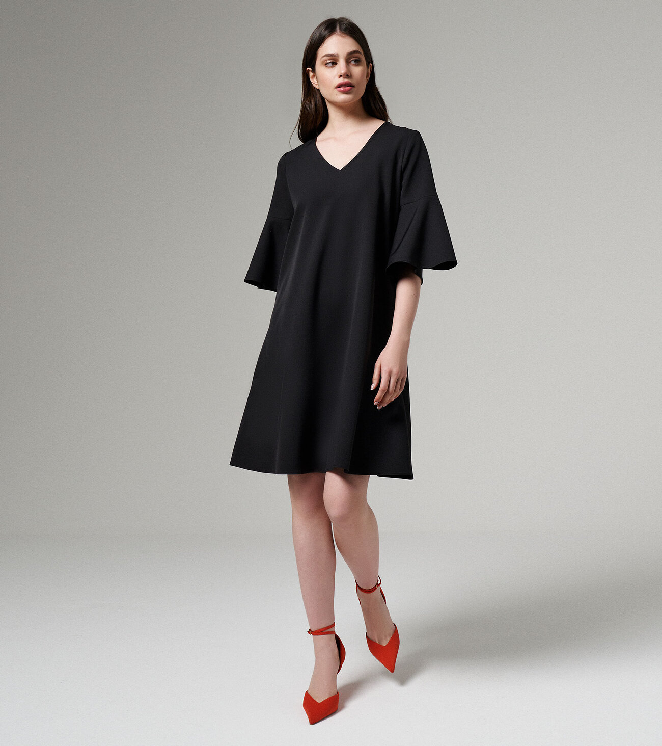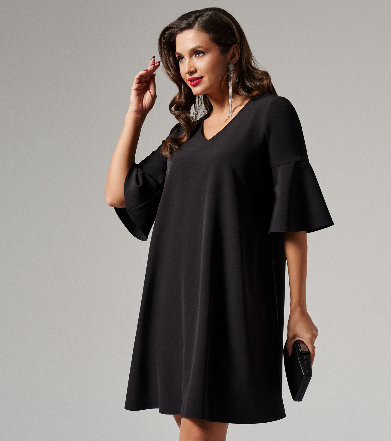 Платье женское из лёгкой ткани для повседневной носки. Платье расширяющеееся к низу с V- образной горловиной. Рукава оформлены воланом. Длина изделия до коленаРазмер 44: Длина изделия - 92см, Длина рукава - 38см, Ширина плеча - 10см, Ширина по бедрам - 63см, Ширина по груди - 50см, Ширина рукава - 17см;