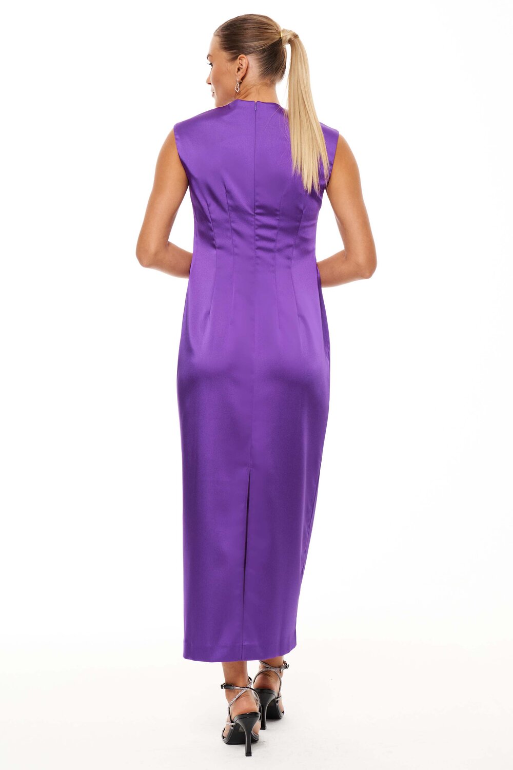 Платье женское атласное полуприлегающего силуэта. Платье подходит как для повседневной носки, так и для праздничных случаев. Перед имеет две нагрудные вытачки. Спинка имеет четыре талиевые вытачки и средний шов с потайной застежкой молнией в шве. В среднем шве по спинке имеет разрез к низу изделия. Горловина чуть заужена. Платье не имеет рукавов. Длина платья миди. Отличный вариант платья для вашего времяпровождения, в нем вы обязательно почувствуете себя уверенней.Размер 42: Длина изделия - 130см, Длина спинки - 40см, Ширина плеча - 13,9см, Ширина по бедрам - 48см, Ширина по груди - 43см;