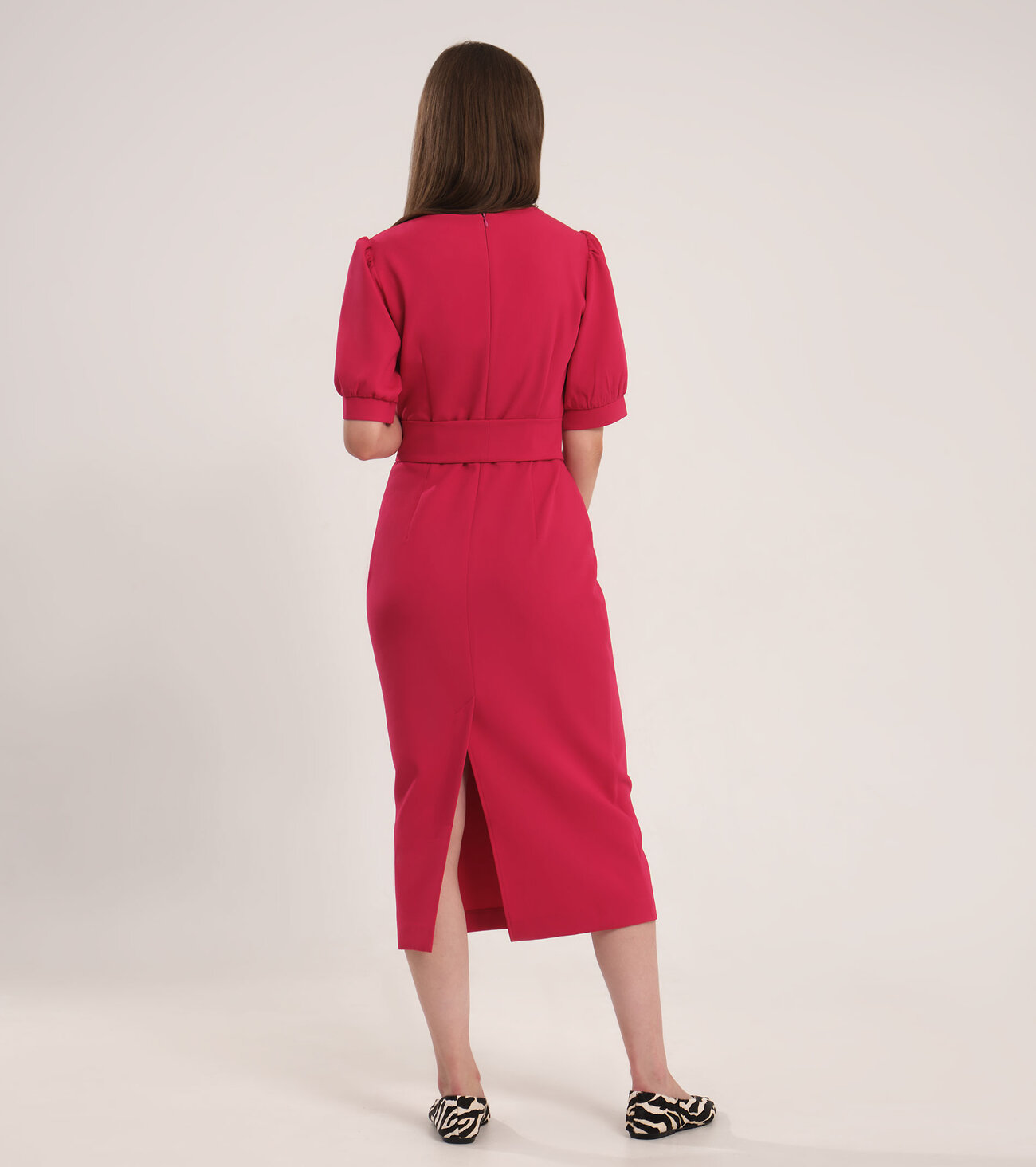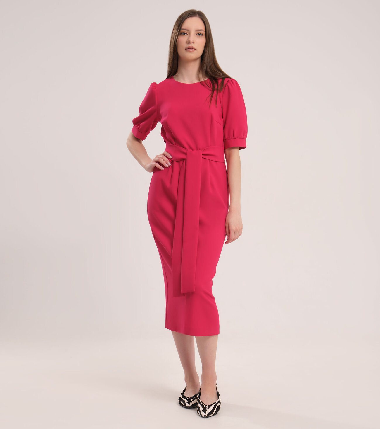 Строгое женское платье станет вашим помощником в формировании стильных образов. Трикотажное платье ниже колен прекрасно садится по фигуре, а благодаря объемному поясу-банту подчеркивает линию талии. Приятный к телу трикотаж не деформируется после стирки, быстро высыхает, не парит, обеспечивая комфорт даже в жаркую погоду. Объемные рукава отлично украшают облегающее платье и придаю ему романтичную ноту. Платье длины миди будет уместно на деловой встрече, торжественном мероприятии, на свидании, Дне Рождения, встрече с подружками. Оно хорошо сочетается с обувью на каблуке и аксессуарами благородных расцветок. Вы можете купить черное женское платье 42 и 44-50 размеров.Размер 44: Длина изделия - 117см, Длина рукава - 31.5см, Ширина плеча - 8.5см, Ширина по бедрам - 50см, Ширина по груди - 47см, Ширина по низу - 44см, Ширина по талии - 39см, Ширина рукава - 20.5см;