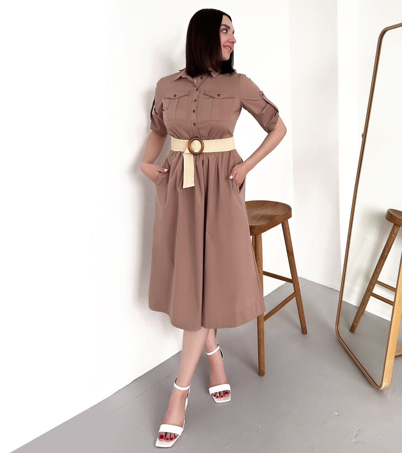 Платье миди – модная модель сезона, которая вашу фигуру стройнее, благодаря приталенному силуэту и ремешку. Платье с воротником рубашечного типа, нагрудными и прорезными боковыми карманами смотрится стильно, лаконично. Рукава с манжетами и патами открывают изящные линии рук. Платье рубашка из хлопкового полотна – мягкое, приятное на ощупь. Оно отлично отводит влагу, пропускает воздух, не сминается. Вы можете купить женское платье в комплекте с красивым съемным декоративным поясом. Комплектация пояса может отличаться от образца на фото. платье рубашка, женское платье, платье миди, платье с воротником, летние женские платья, летние платья для женщин, платье с поясом, платье рубашка с поясом, рубашка платье женская, платье с пышной юбкой, женское платье ниже колена, женское платье с рукавом, платье с рукавом 3 4, красивые платья, летние платья, модные платья, платье с рукавами, платья для женщин, платье на пуговицах, платье весеннее, платье на лето, повседневное женское платье, стильное платьеРазмер 42: Длина изделия - 116см, Длина рукава - 27см, Ширина плеча - 11.8см, Ширина по бедрам - 55см, Ширина по груди - 45см, Ширина по талии - 42.5см, Ширина рукава - 16см;