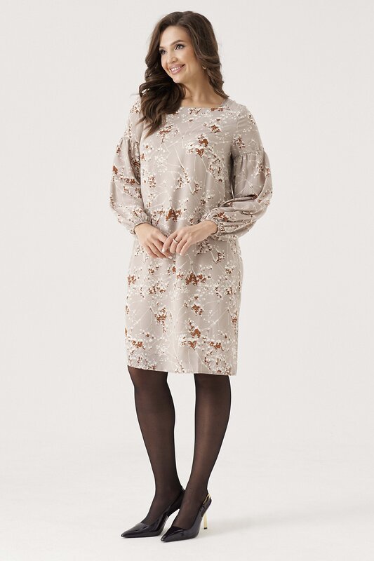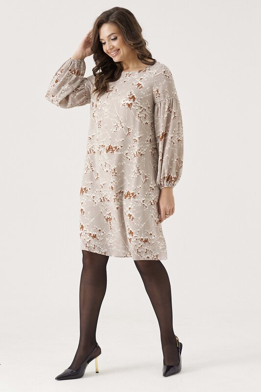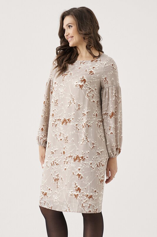 Платье женское из лёгкой струящейся ткани для повседневной носки. Платье прямого силуэта. Перед имеет нагрудные вытачки. Горловина прямая, по плечам имеется прямоугольная вставка. Рукав со сборкой, низ рукава обработан резинкой. Длина платья чуть выше колена. В качестве придания платью формы по талии имеется пояс. Платье на вискозной подкладке. Нежный и очаровательный вариант платья, который не оставит никого равнодушным.Размер 44: Длина изделия - 101см, Длина рукава - 62см, Ширина плеча - 8.3см, Ширина по бедрам - 54см, Ширина по груди - 52см, Ширина рукава - 17.8см;