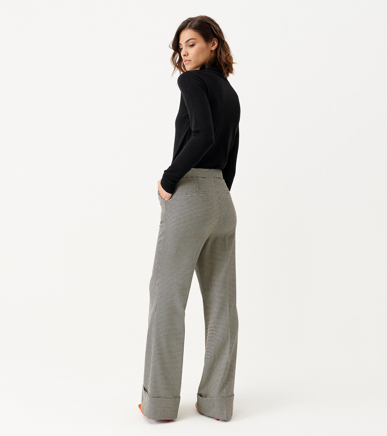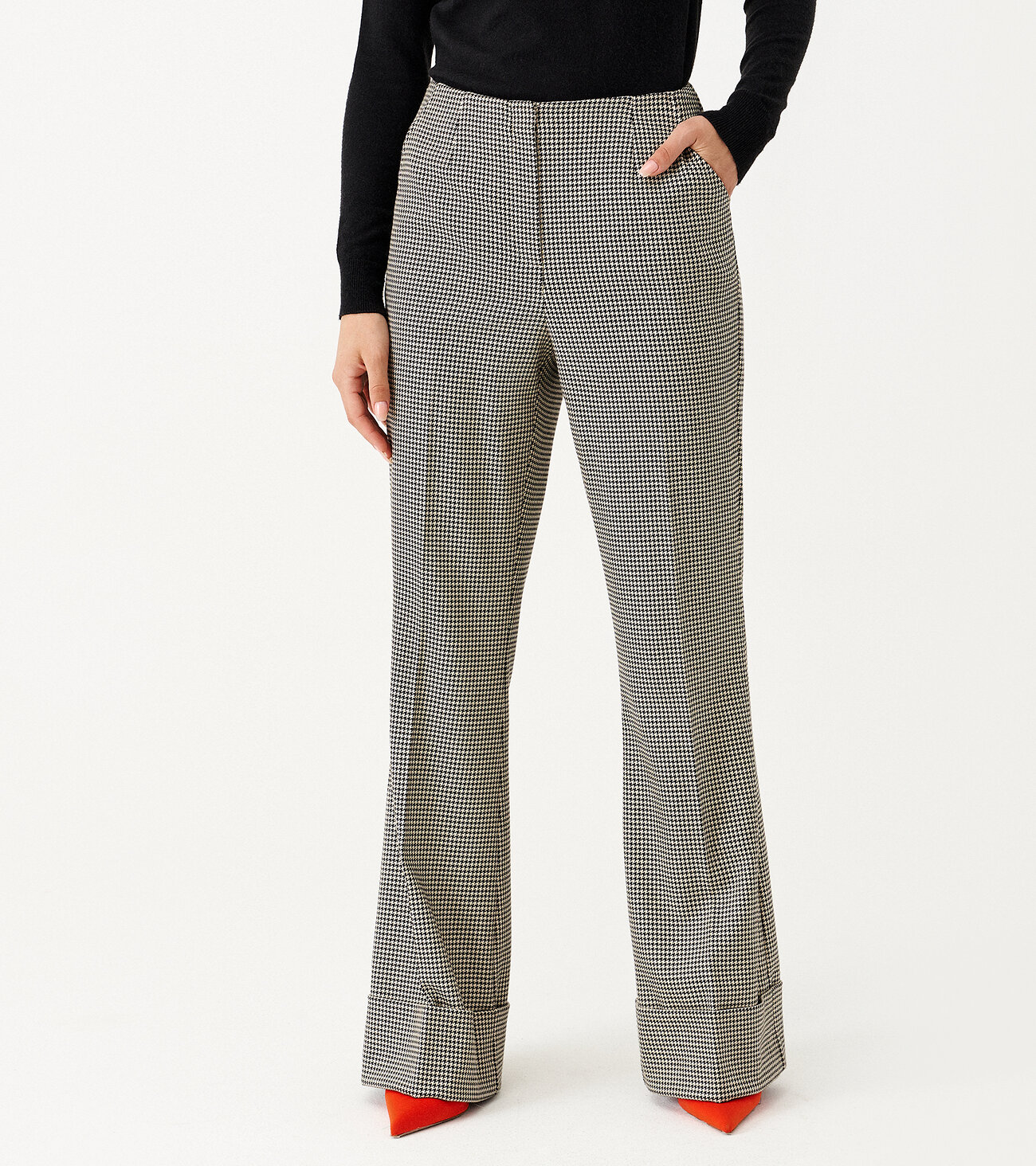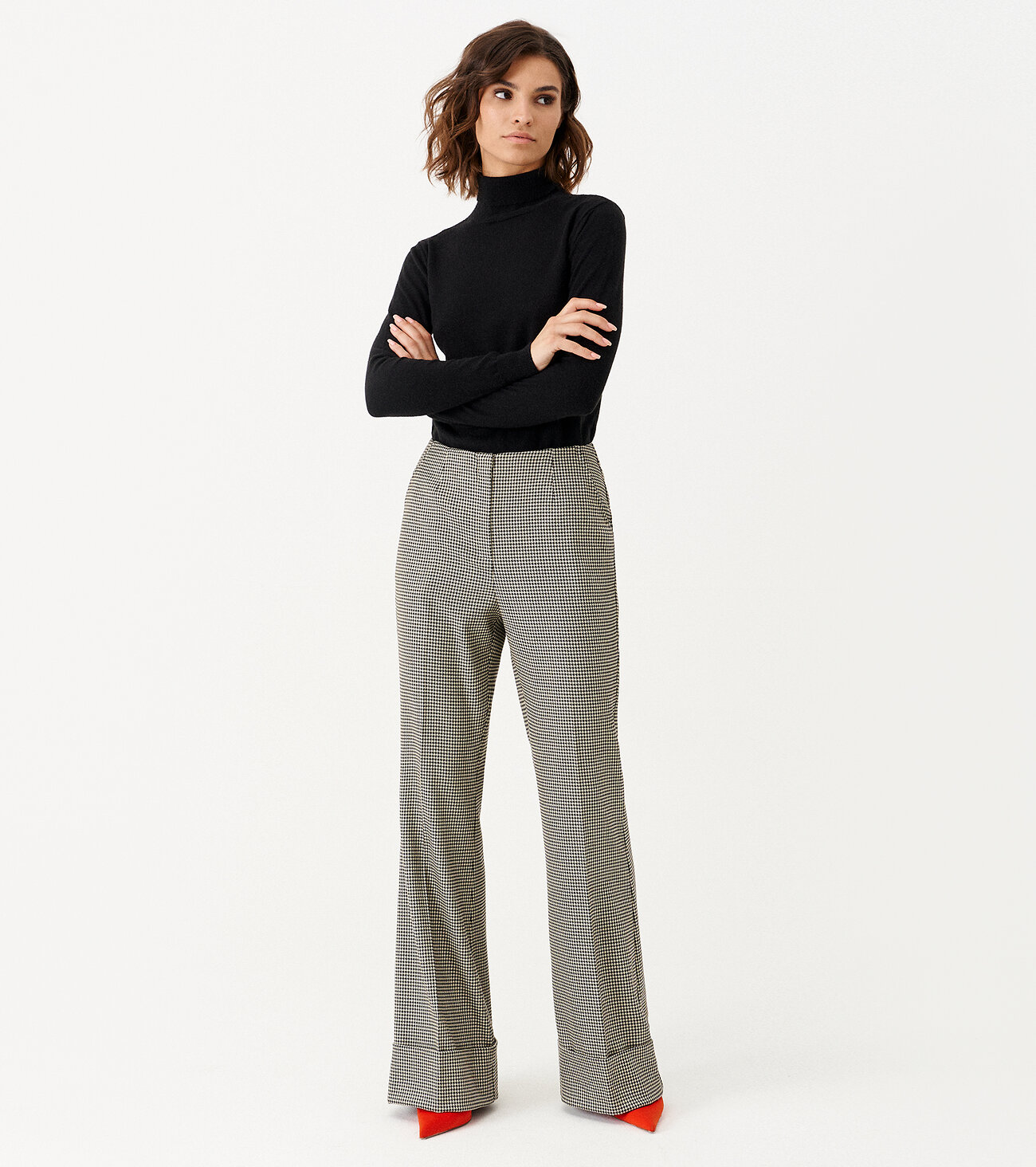Размер 44: Высота посадки - 28см, Длина брюк с поясом - 108см, Длина по внутреннему шву - 81см, Ширина брючин сверху - 63см, Обхват брюк по низу - 60.5см, Ширина по бедрам - 48см, Ширина по талии - 35см;