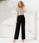 Размер 48: Высота посадки - 29см, Длина брюк с поясом - 108.5см, Длина по внутреннему шву - 81см, Ширина брючин сверху - 67см, Обхват брюк по низу - 62см, Ширина по бедрам - 52см, Ширина по талии - 39см;