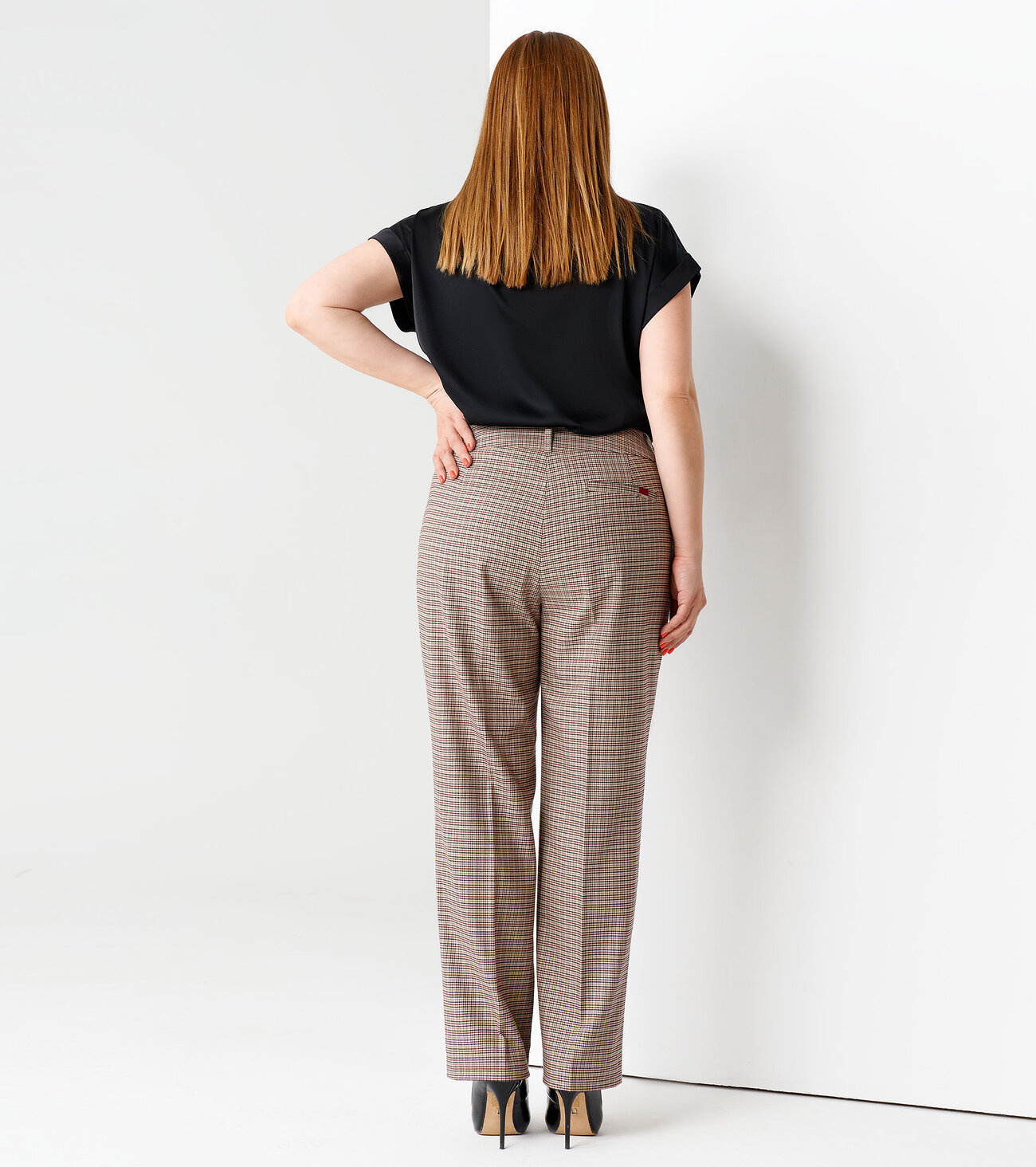 Брюки женские классические никогда не выйдут из моды, так как они - основа для создания деловых и повседневных сетов. Стильная модель органично комбинируется с блузками, топами, свитерами, кофтами, пиджаками, жилетами, кардиганами. Брюки женские теплые подойдут под вашу любимую куртку, пальто, полушубок. Лаконичное изделие изготовлено из мягкой плотной поливискозной ткани в клетку, устойчивой к активной носке, частой стирке. Брюки женские больших размеров отличаются аккуратными линиями кроя, ровными прочными швами, минималистичным дизайном. Размер 50: Высота посадки - 26см, Длина брюк с поясом - 102,5см, Длина по внутреннему шву - 77,5см, Ширина брючин сверху - 68,5см, Обхват брюк по низу - 38см, Ширина по бедрам - 54см, Ширина по талии - 41см;