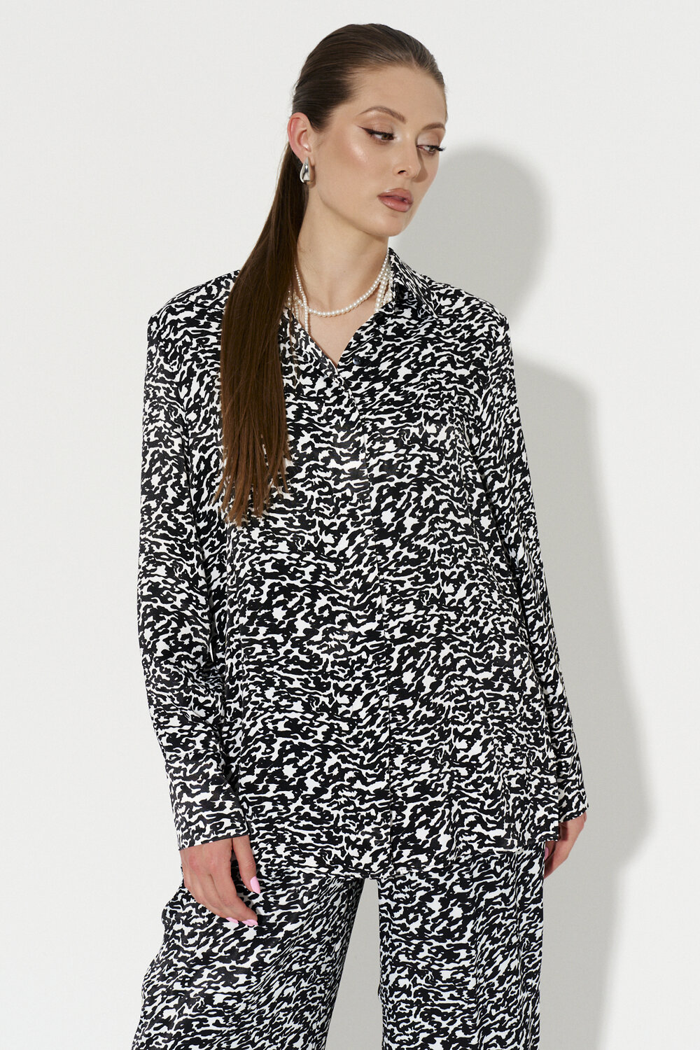 Блузка женская из вискозной ткани для повседневной носки прямого силуэта. Блузка имеет центральную ботовую застежку на петли пуговицы. Горловина обработана рубашечным воротником с отрезной стойкой. Рукава длинные, низ рукава обработан притачной манжетой с застежкой на петли пуговицы. Очень стильная и модная блузка, которая будет гармонично смотреться на вашей фигуре.Размер 44: Длина изделия - 73см, Длина рукава - 62см, Обхват шеи - 44см, Ширина плеча - 14см, Ширина по груди - 50см, Ширина по низу - 53см, Ширина рукава - 18,5см;