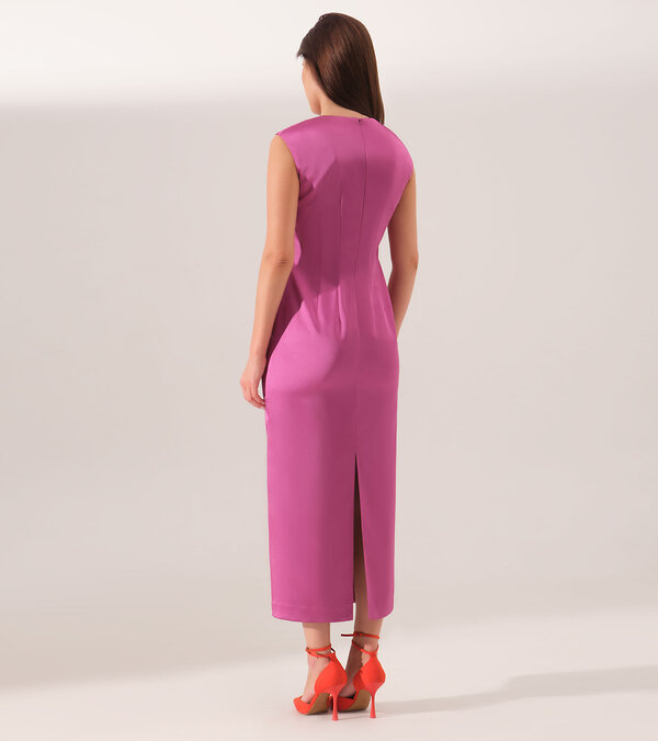 Платье женское прилигающего силуэта.Платье подходит как и для повседневной носки так и для праздничных случаев. Без подкладки. Платье полуприлегающего силуэта без рукавов. Застегивается на молнию в среднем шве спинки. Средний шов спинки заканчиваетя разрезом.Размер 42: Длина изделия - 130см, Длина спинки - 40см, Ширина плеча - 13,9см, Ширина по бедрам - 48см, Ширина по груди - 43см;