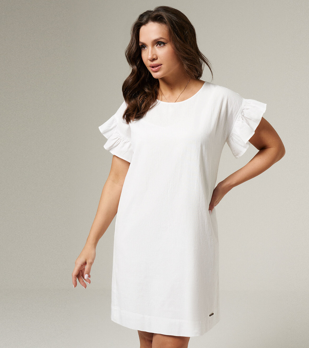 Размер 48: Длина изделия - 92,5см, Ширина плеча - 17,5см, Ширина по бедрам - 59см, Ширина по груди - 67,5см, Ширина рукава - 21,2см; Нижнее платье