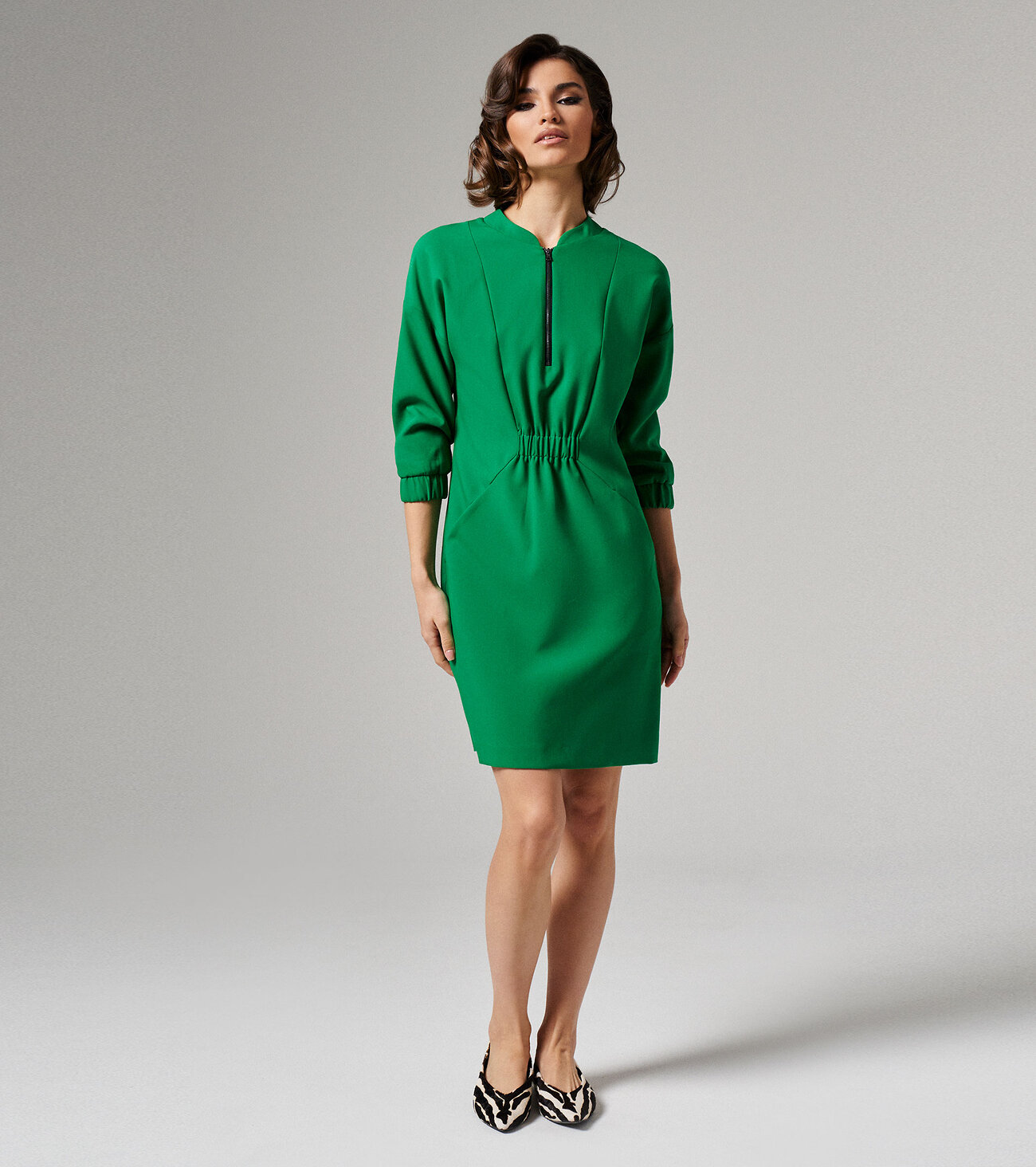 Платье женское из поливискозной ткани для повседневной носки. На передней части платья от горловины вставлена молния, есть рельефы и прорезные карманы. Так же на передней части в области талии вставлена резинка. На задней части платья так же есть рельефы и вставлена резинка в области талии. Рукава втачные укороченные. Ткань однотоннаяРазмер 48: Длина изделия - 94см, Длина рукава - 35см, Ширина плеча - 22,5см, Ширина по бедрам - 55см, Ширина по груди - 54см, Ширина рукава - 19,4см;