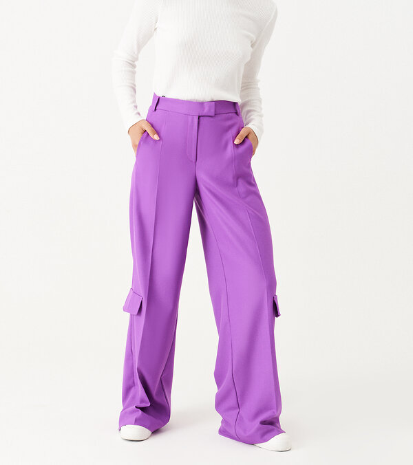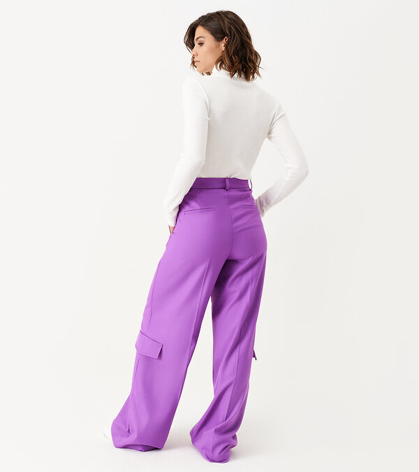 Размер 42: Высота посадки - 27,5см, Длина брюк без пояса - 105см, Длина по внутреннему шву - 76см, Ширина брючин сверху - 65см, Обхват брюк по низу - 64см, Ширина по бедрам - 50см, Ширина по талии - 34см;