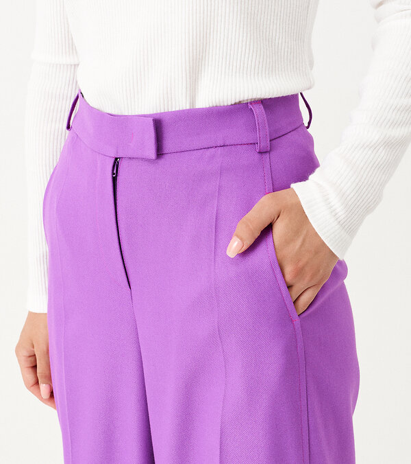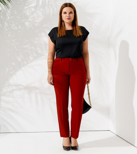 Размер 44: Высота посадки - 28см, Длина брюк без пояса - 105см, Длина по внутреннему шву - 75,8см, Ширина брючин сверху - 67см, Обхват брюк по низу - 65см, Ширина по бедрам - 52см, Ширина по талии - 36см;