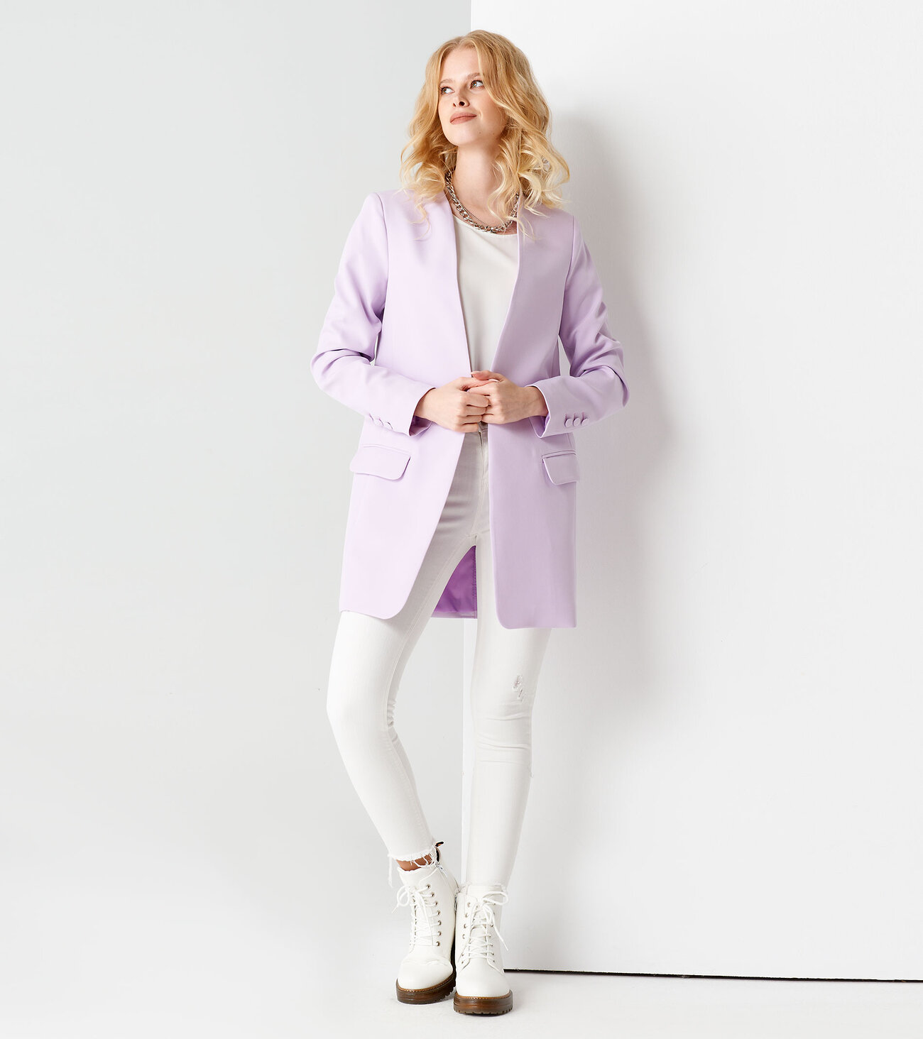 Стильный модный жакет. Это повседневный удобный и практичный жакет, который отлично сочетается как с джинсами, так и с брюками. Жакет удлиненный, без застежки, рукава длинные. По переду имеются карманы с клапаном. Жакет на подкладки.Размер 42: Длина изделия - 81см, Длина рукава - 62см, Ширина плеча - 12см, Ширина по груди - 45см, Ширина по низу - 52см, Ширина рукава - 17,3см;
