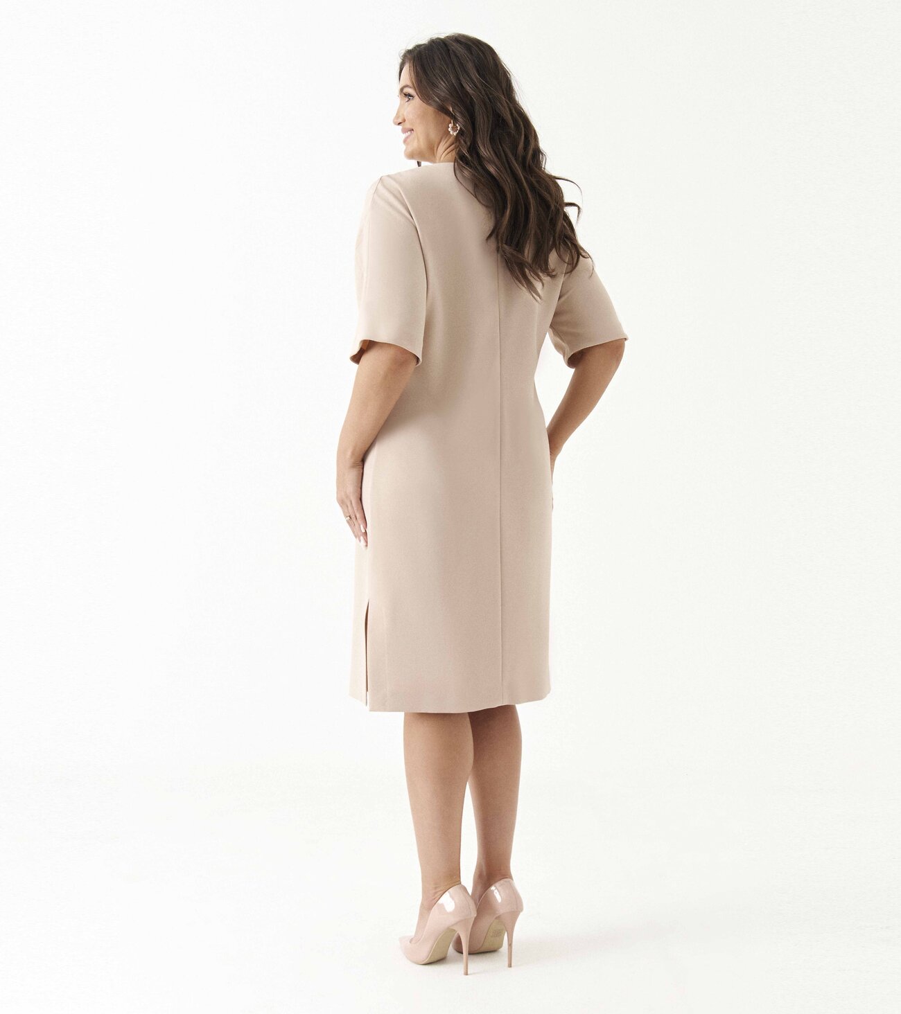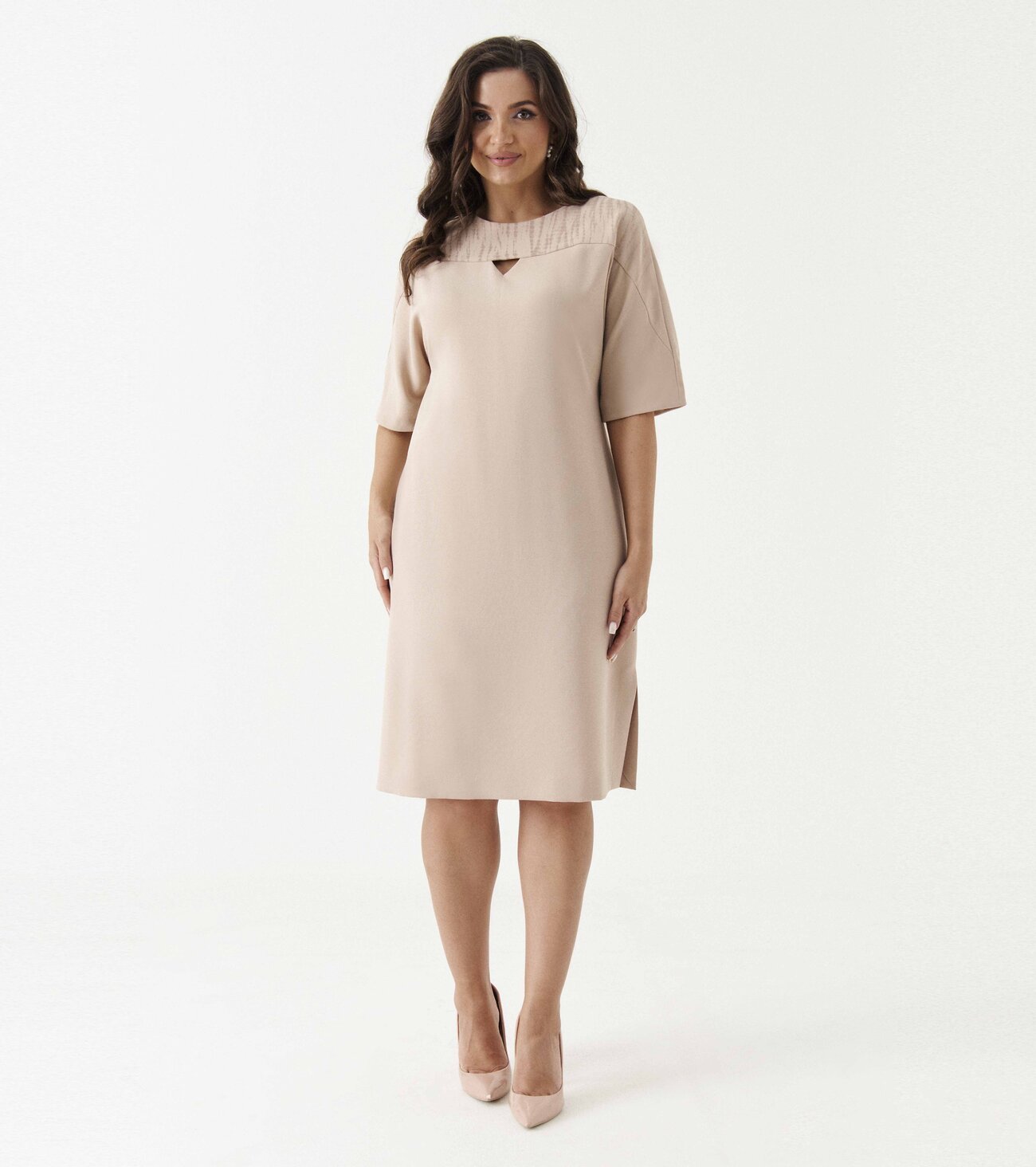 платье женское прямого силуэта с декоративным вырезомРазмер 46: Длина изделия по спинке - 100см, Длина рукава с плечом - 43см, Ширина по бедрам - 53см, Ширина по талии - 45см, Ширина рукава - 20,5см;