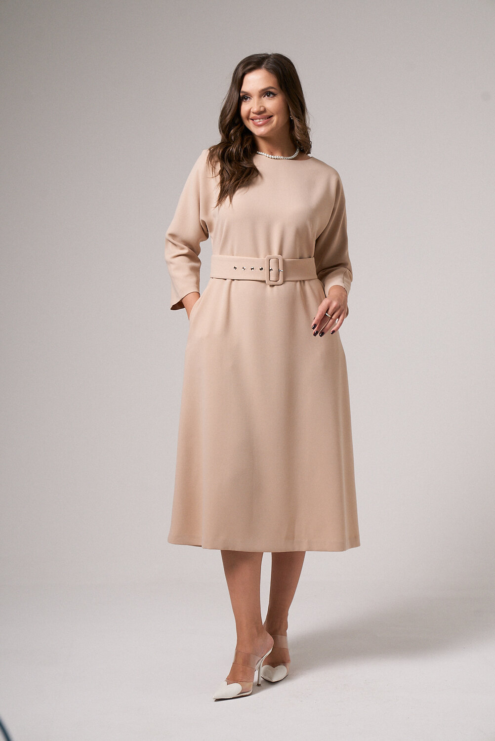 Платье женское из смесовой ткани для повседневной носки прямого силуэта. По спинке в среднем шве имеется застежка на тесьму-молнию, Платье слегка расширенно к низу изделия. В боковом шве имеются два потайных кармана. Горловина круглая слегка расширена. Рукава цельнокроеные, не доходящие до запястья. Для придания формы в области талии имеется пояс. Данный вариант платья будет элегантно смотреться на любой фигуре, а также подчеркнет все ваши достоинства.Размер 48: Дл.спины от высшей плечевой точки до талии - 42см, Длина изделия - 116.5см, Длина рукава - 57см, Ширина по бедрам - 63.5см, Ширина по груди - 56.5см, Ширина рукава - 24.5см;