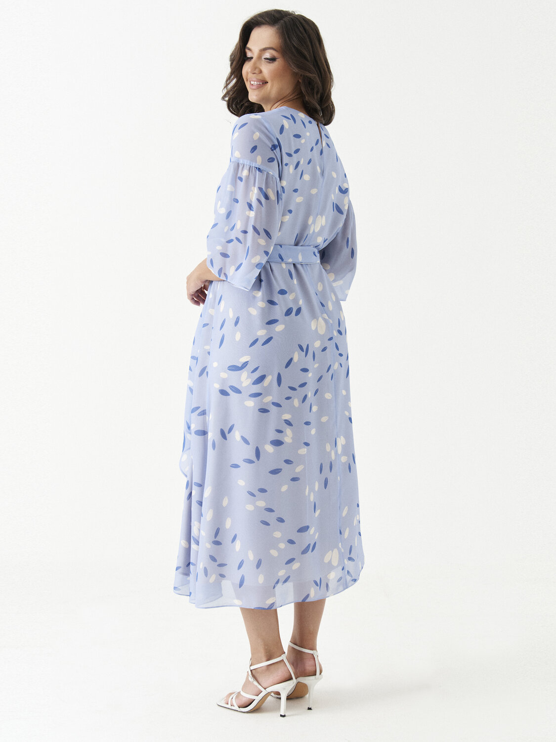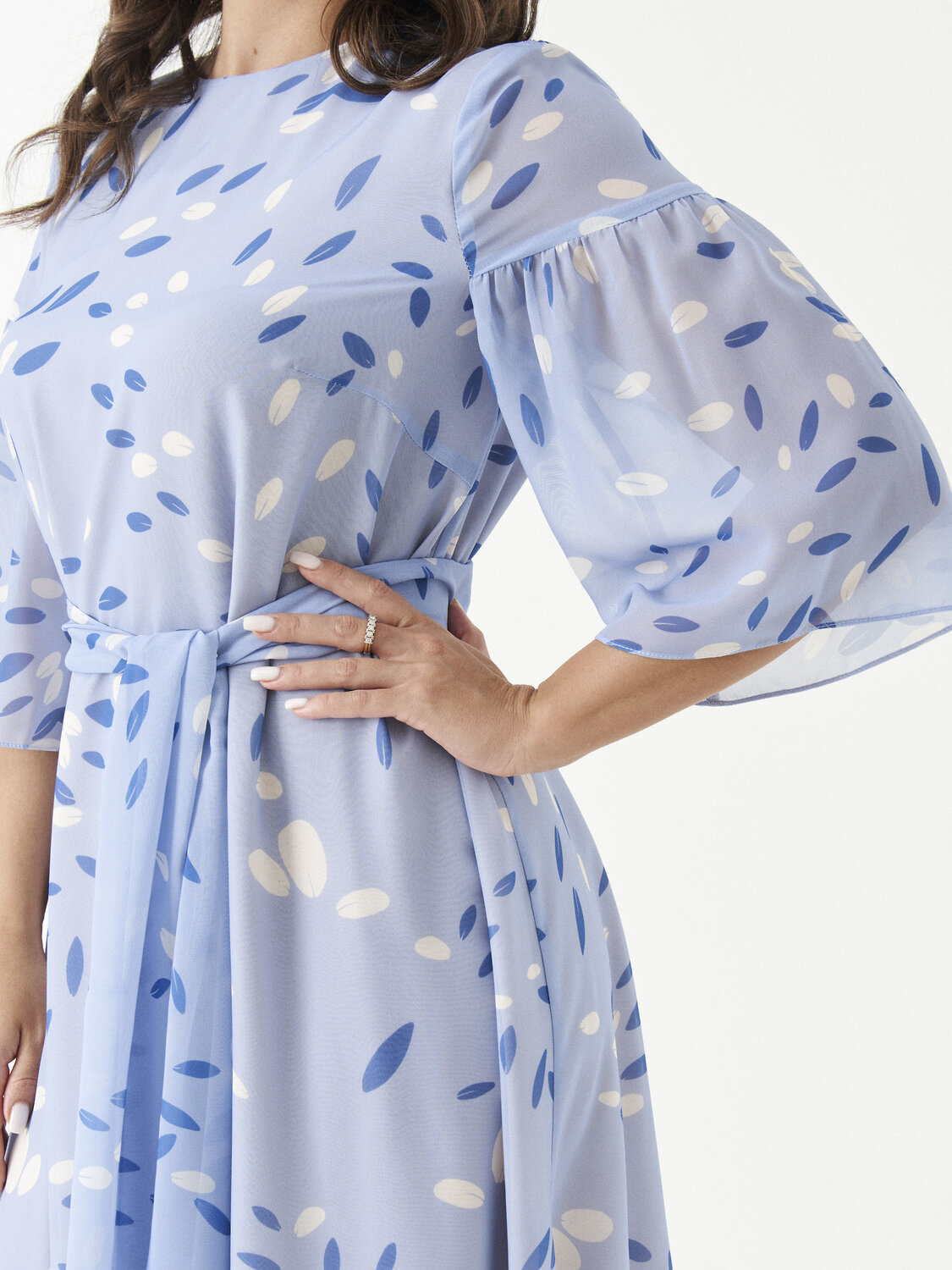 Платье женское из струящейся ткани для повседневной носки с натуральной вискозной подкладкой. Платье прямого силуэта, расширенное к низу. Перед с нагрудными вытачками. Спинка со средним швом, застежка на петлю пуговицу. Рукава отрезные со сборкой, длина чуть ниже уровня локтя. Для придания в области талии прилегания имеется пояс. Длина изделия миди. Очень легкий и воздушный вариант платья, которое отлично будет подходить для любого рода мероприятия. А главное, за счет своей натуральной подкладки ваша кожа сможет расслабиться и дышать.Размер 48: Длина изделия по спинке - 123см, Длина рукава - 44см, Ширина плеча - 10см, Ширина по груди - 58см, Ширина по низу - 116см, Ширина спинки - 39см;