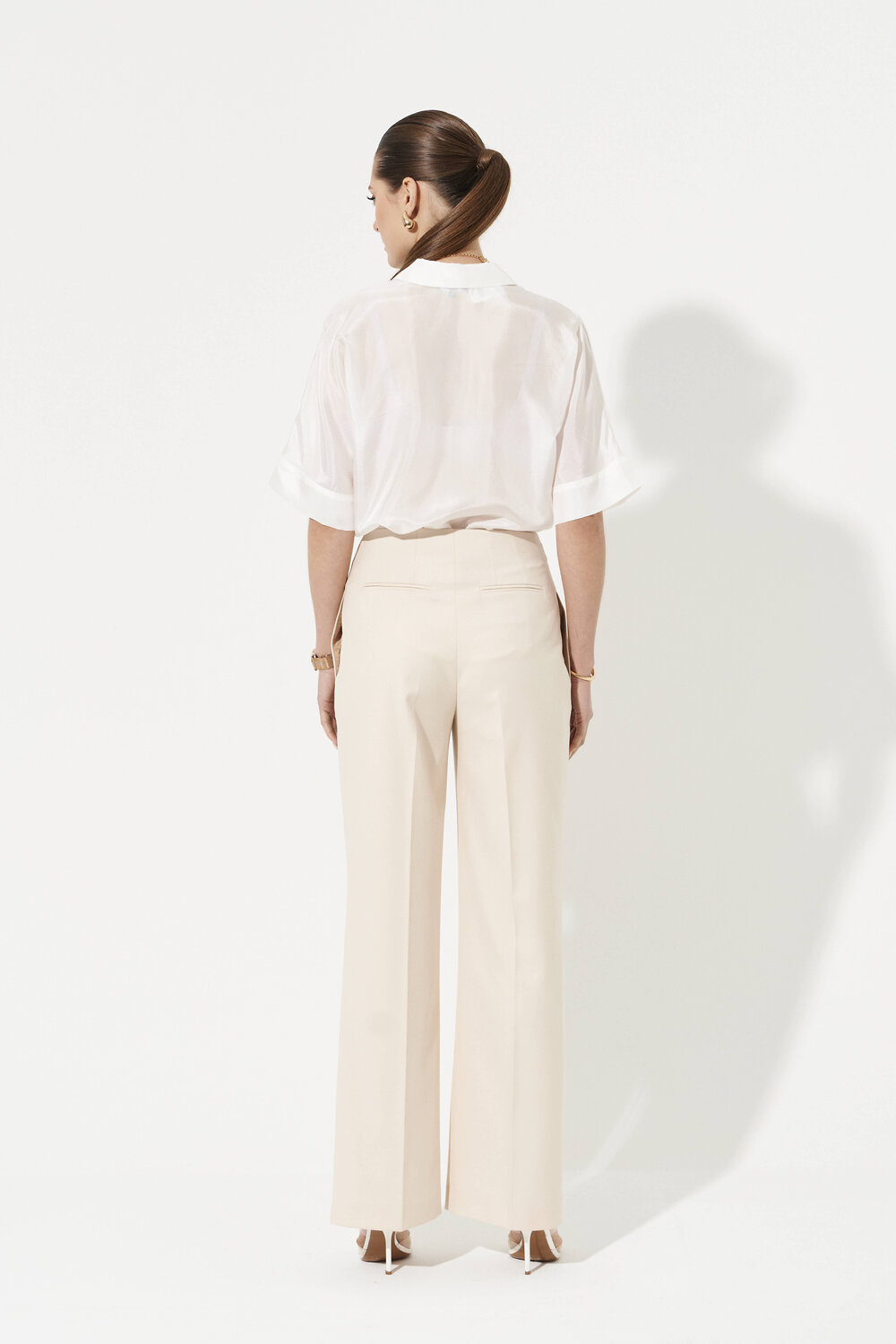 Размер 54: Высота посадки - 31см, Длина брюк без пояса - 110см, Длина по внутреннему шву - 85см, Ширина брючин сверху - 74.5см, Обхват брюк по низу - 48см, Ширина по бедрам - 58.5см, Ширина по талии - 47см;