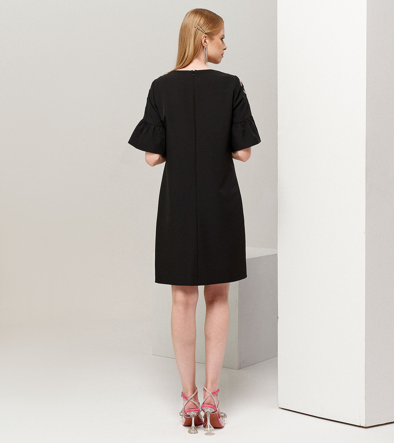 Платье мини с вышивкойРазмер 42: Длина изделия - 89,5см, Длина рукава - 30см, Ширина плеча - 7,4см, Ширина по бедрам - 49,5см, Ширина по груди - 46,5см, Ширина рукава - 16,8см;