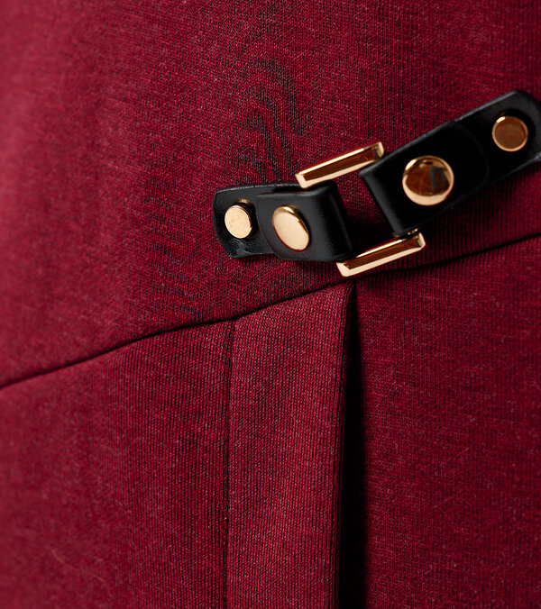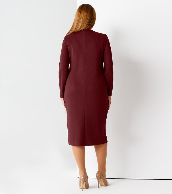 Мягкое и элегантное платье прилегающего силуэта выполнено из приятного на ощупь трикотажа.Рукав втачной ,длинный. Вырез горловины асимметричный,декорирован деталью со складкой,имитирующей воротник. На уровне ниже далии выполнен асимметричный подрез,декорированный пряжкой. Нижеподреза офирмлены складка,переходящая в шлицу снизу, и косой вход во внутренний карман. Длина платья ниже колена. Практичное и стильное платье на каждый день и для работы в прохладную погоду.Размер 58: Дл.спины от высшей плечевой точки до талии - 44см, Длина изделия - 112см, Длина рукава - 62см, Ширина плеча - 12см, Ширина по бедрам - 63см, Ширина по груди - 61см, Ширина рукава - 21,3см;