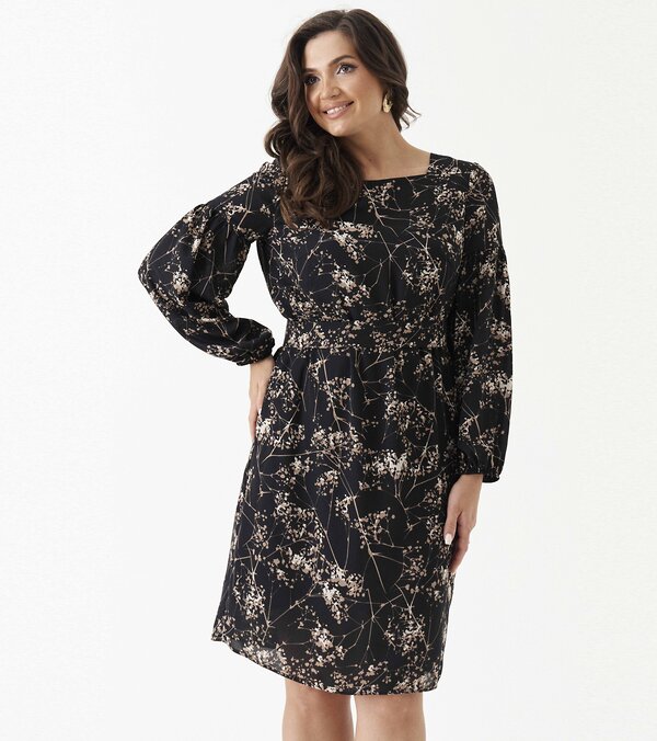 Платье женское из полиэфирной ткани на подкладке с вискозы для повседневной носки прямого силуэта. Перед имеет нагрудные вытачки. Горловина прямая, по плечам имеется прямоугольная вставка. Рукав со сборкой, низ рукава обработан резинкой. Длина платья чуть выше колена. В качестве придания платью формы по талии имеется пояс. Нежный и очаровательный вариант платья, который не оставит никого равнодушным.Размер 42: Длина изделия - 101см, Длина рукава - 62см, Ширина плеча - 8,1см, Ширина по бедрам - 52см, Ширина по груди - 50см, Ширина рукава - 17см;